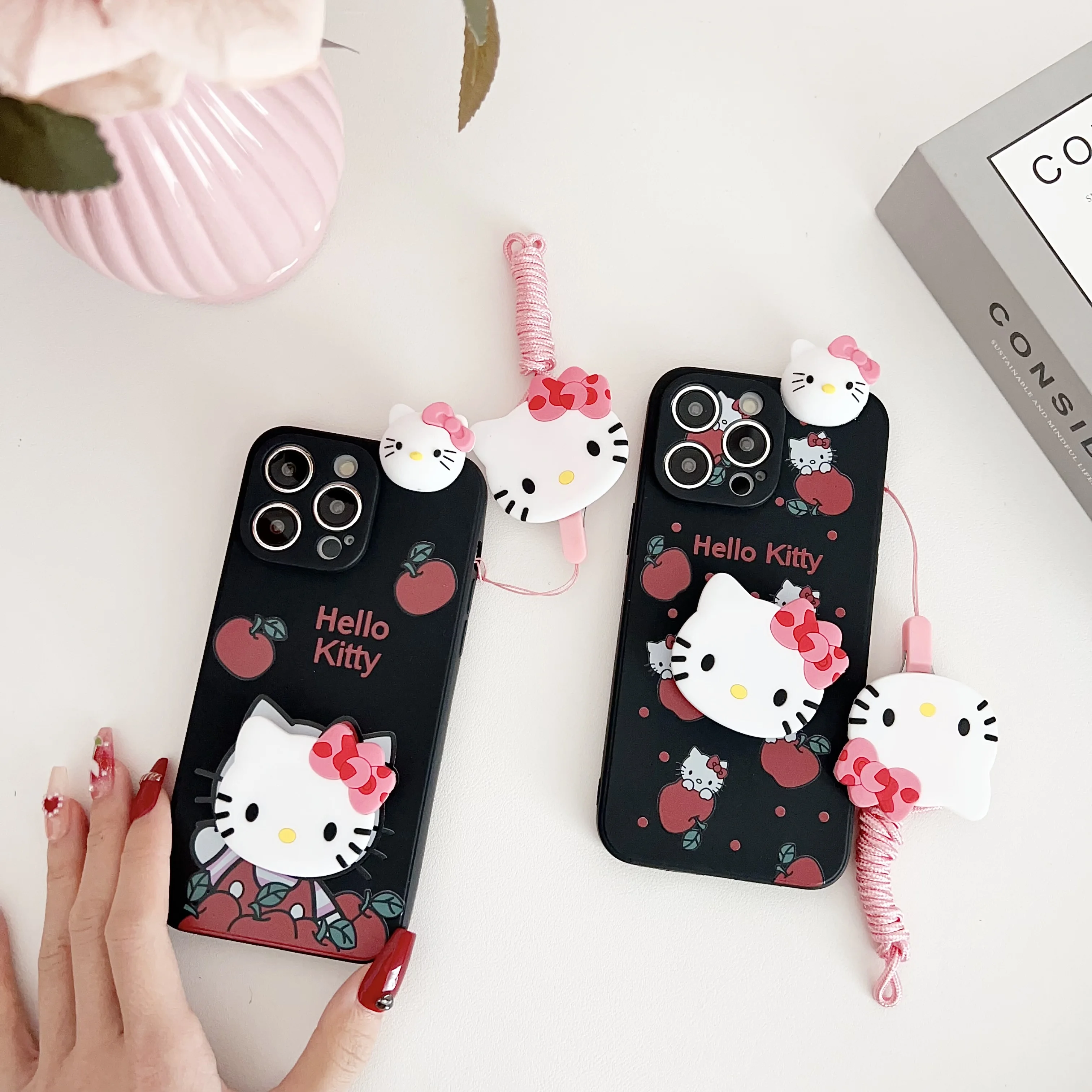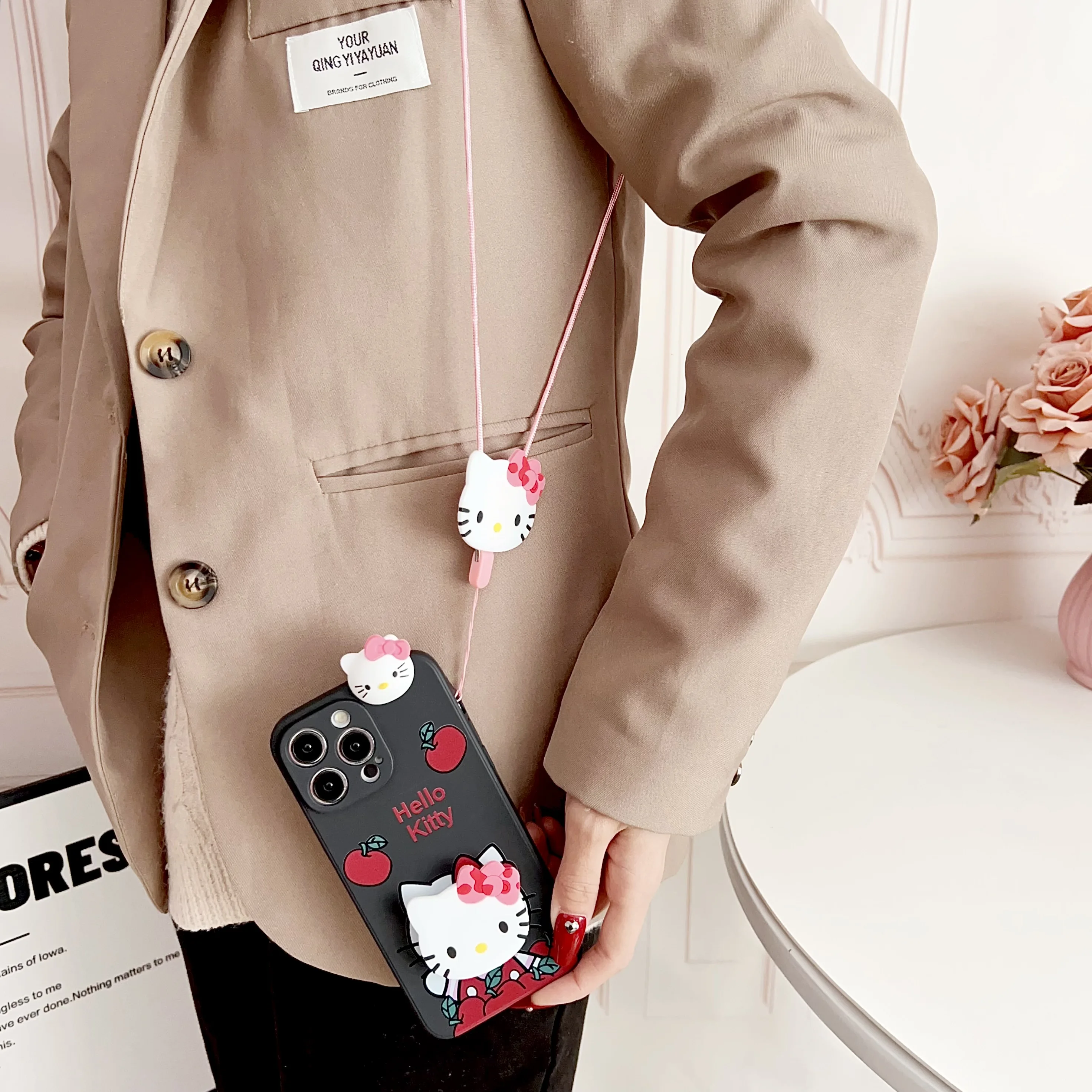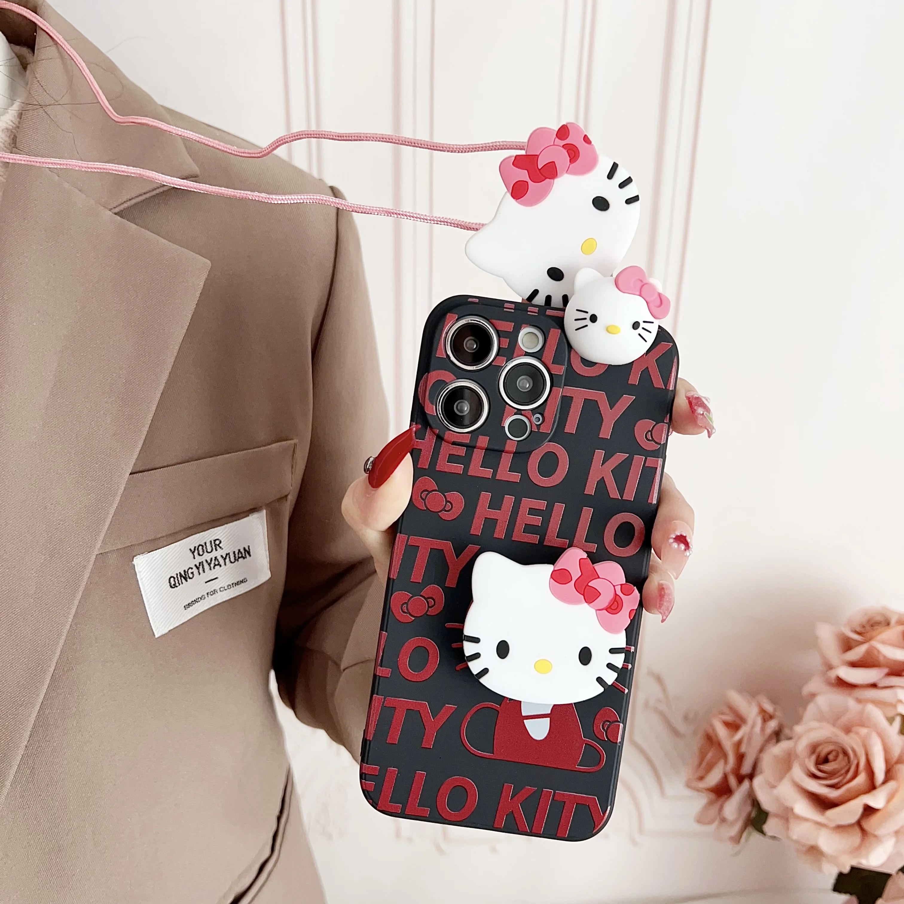 Comprar Funda roja con cuerda para Xiaomi Redmi 10, 10A, 12, 10C, 12C, 13C, Note 7, 8, 9, 9s, 10, 11, 12, 13 Pro, Hello Kitty