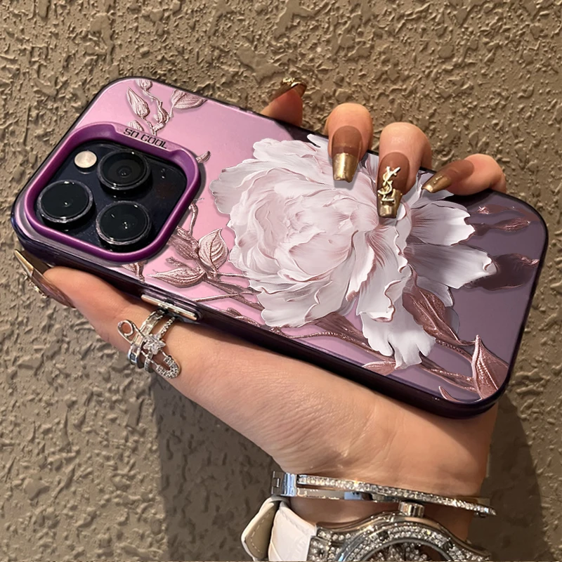 Funda rosa dorada con flor de loto para Samsung Galaxy S23 S24 S25 S22 Ultra S21 Plus FE A56 A36 A26 5G A16 A06 4G Note 20