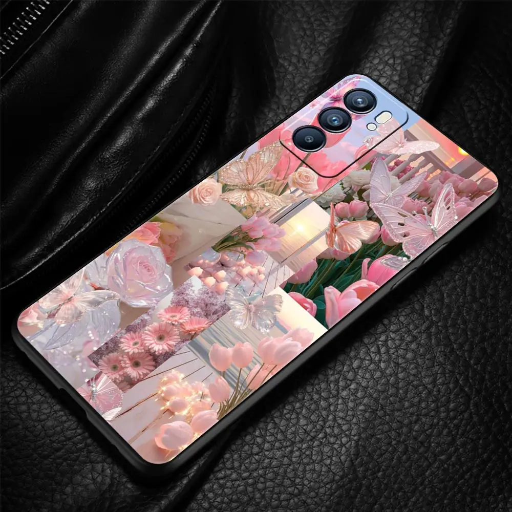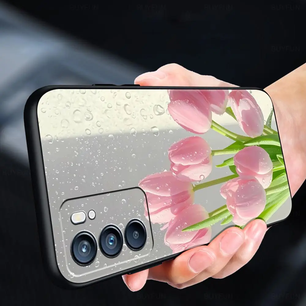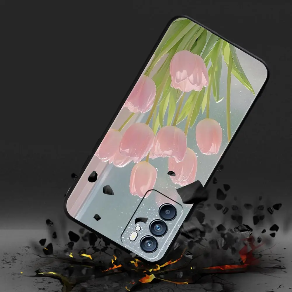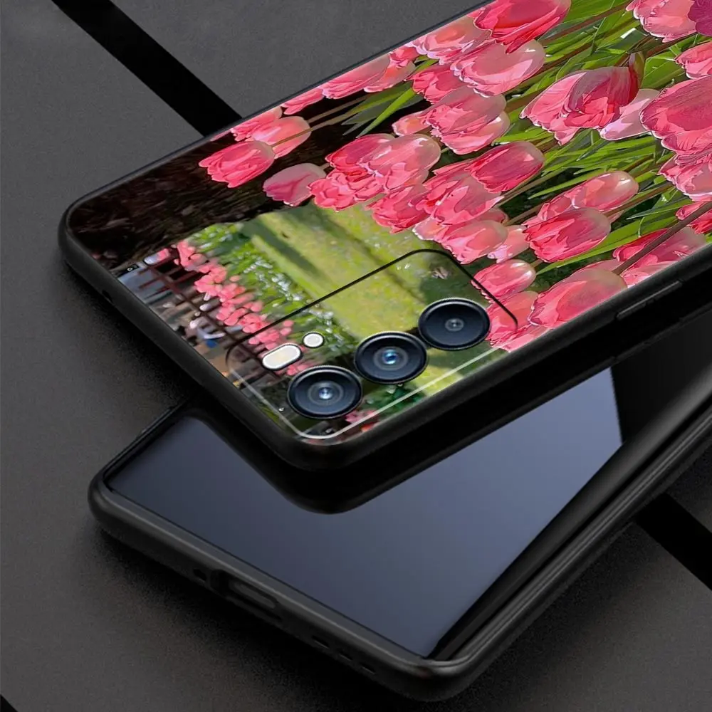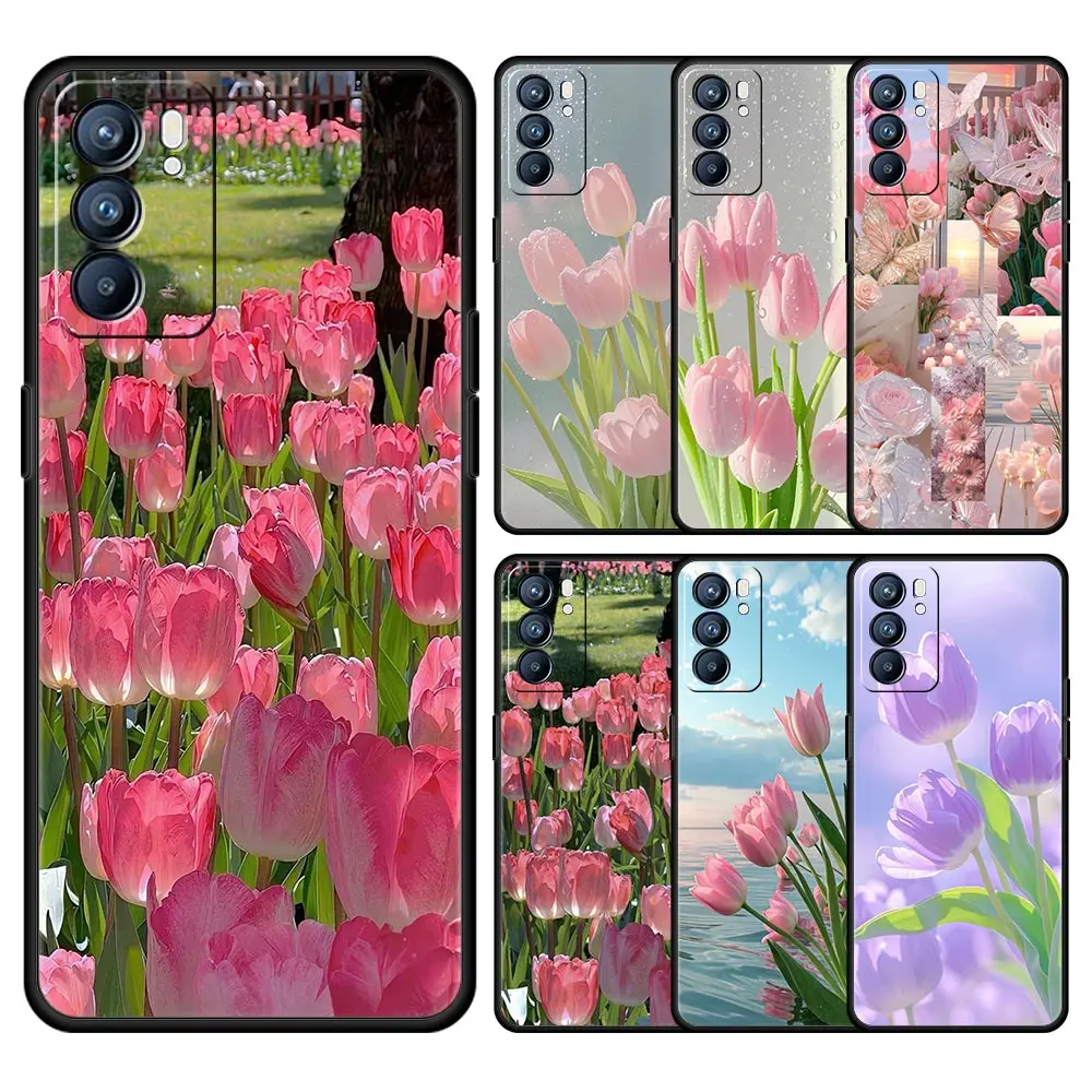 Funda rosa con forma de corazón de amor y flor de tulipán para Oppo Reno14 Reno13 Reno12 11 F 10 Find X5 X9 Pro A54 5G A53 A52 A9 A78 4G A79 A98