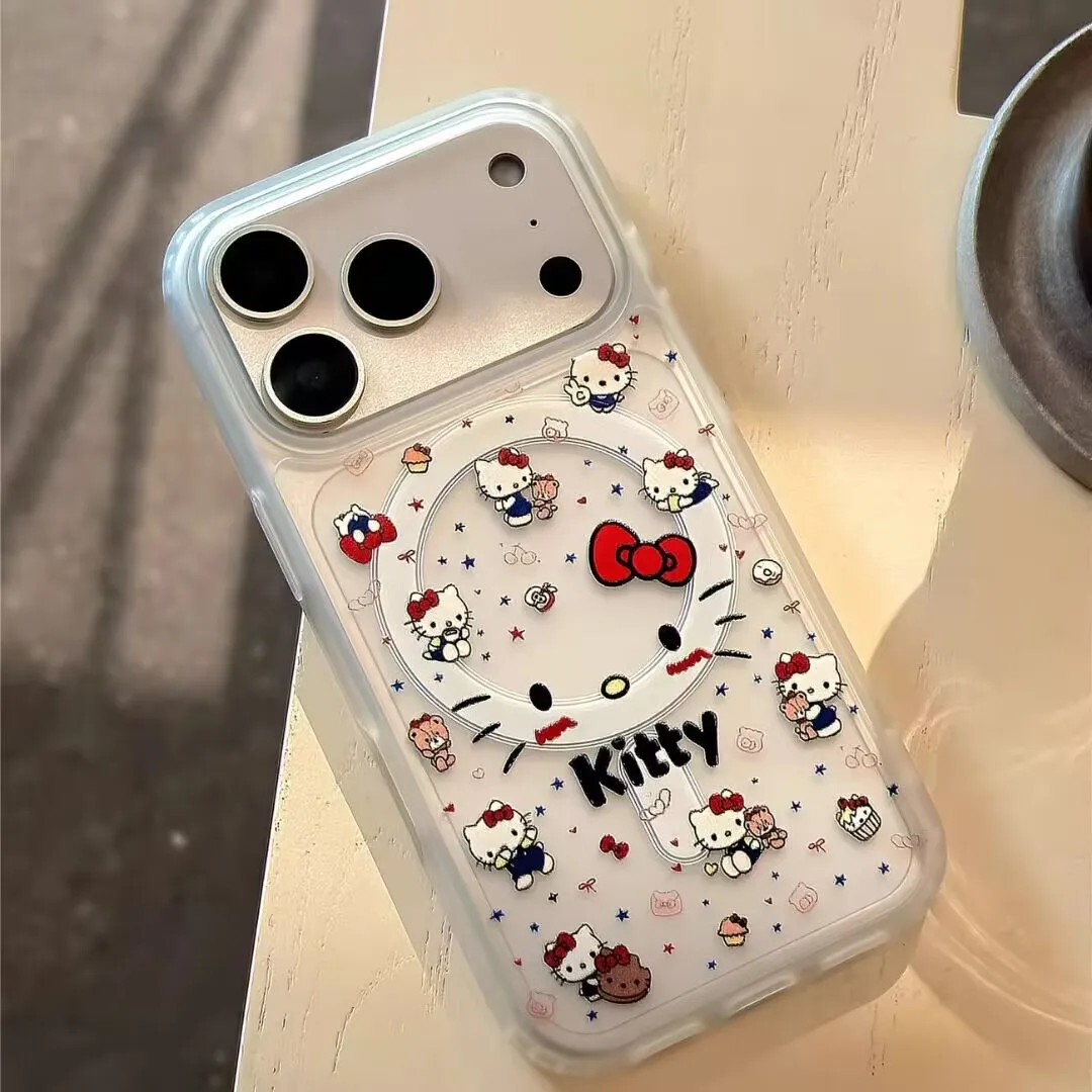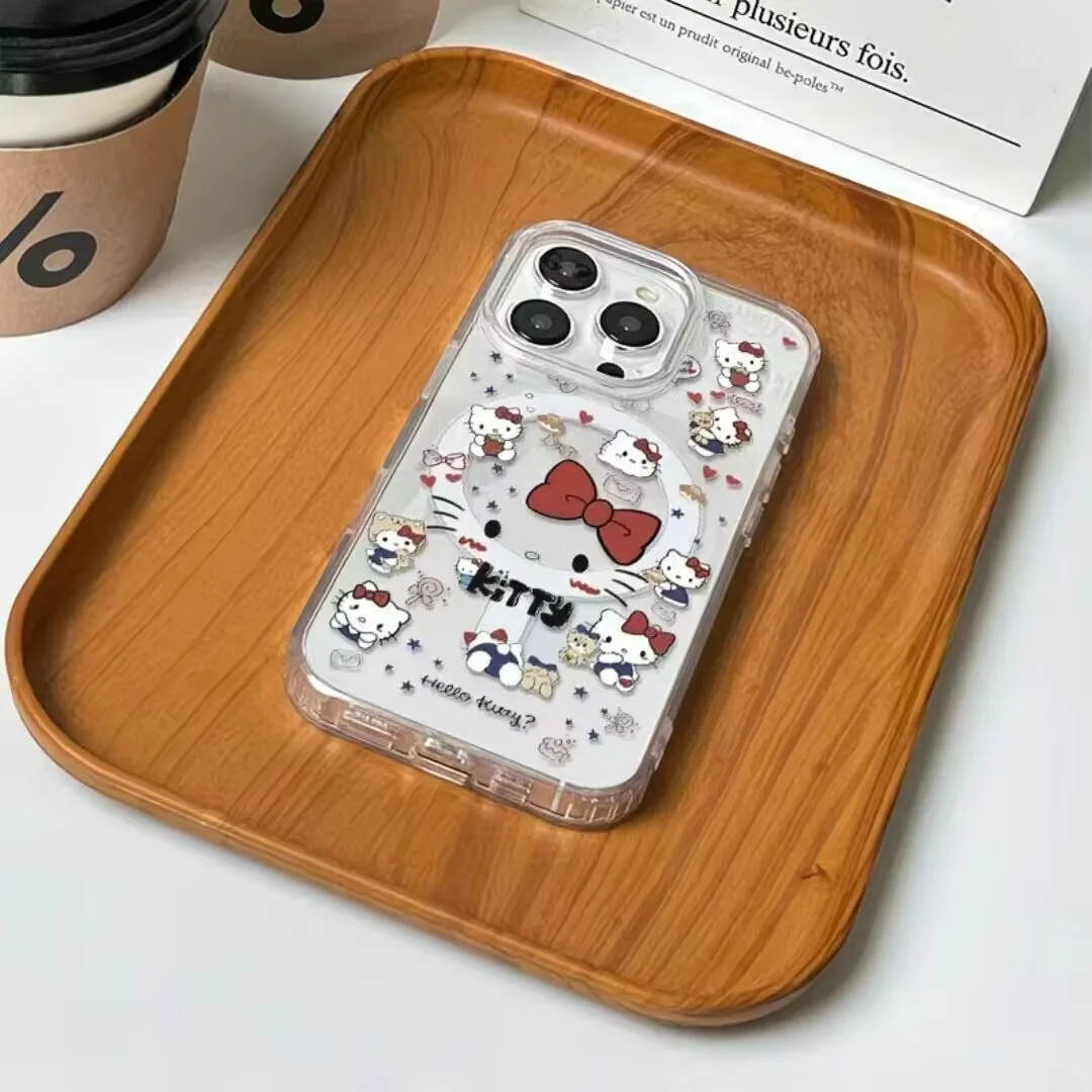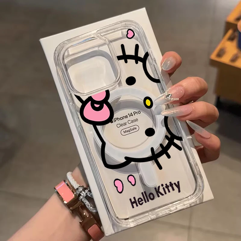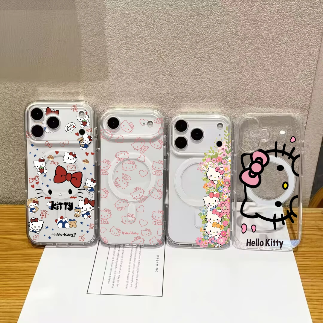 Comprar Funda rosa Hello Kitty Bowknot Magsafe para iPhone 16 15 14 13 17 PRO MAX Plus 13 Mini 16E 17 Air 17 Pro cubierta transparente magnética