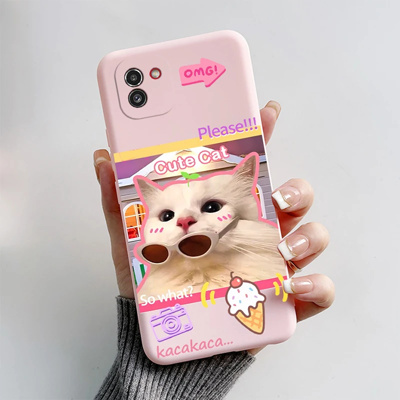 Comprar Funda para Samsung Galaxy A03, carcasa suave de TPU con dibujos de zorro y gato, parachoques para teléfono
