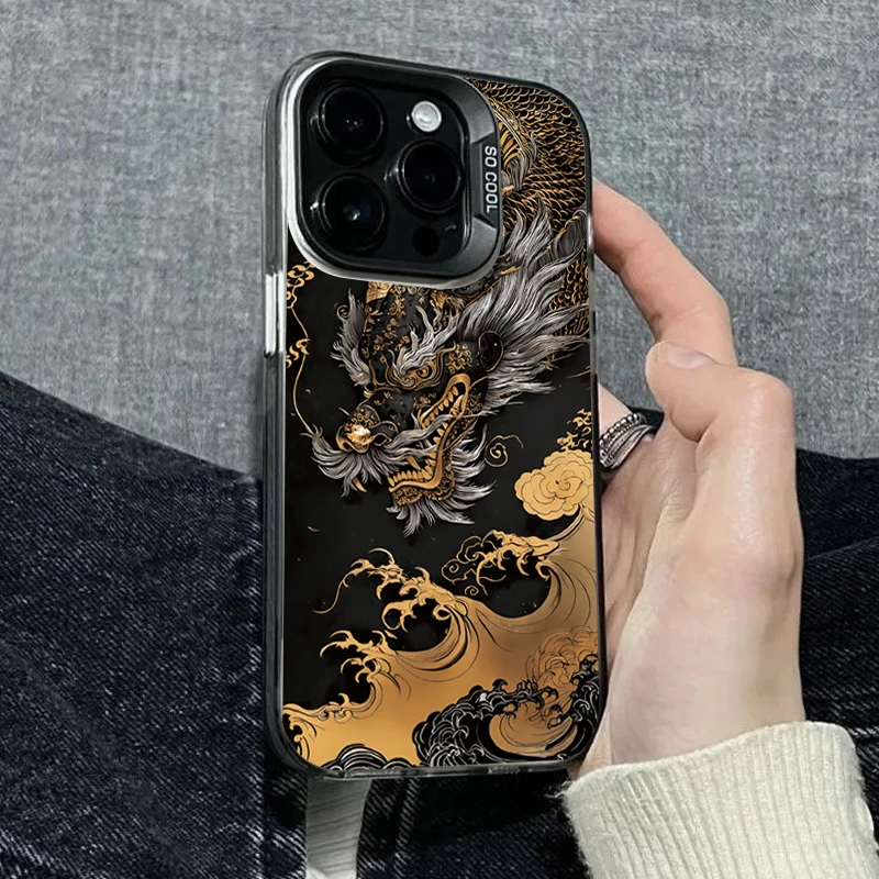 Funda para Samsung Galaxy A16 A15 A55 A54 A56 A36 A35 A05 S24 S23 S22 Ultra Plus S21 S25FE funda de teléfono con diseño de dragón dorado negro