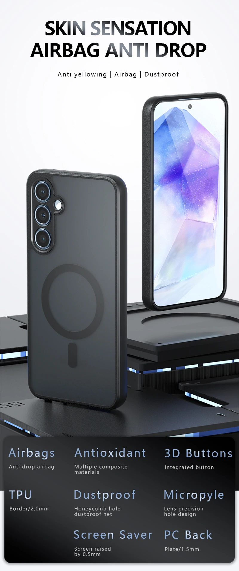 Funda para Samsung Galaxy A55, A35, A25, A15, F15, S24, S23, S22, funda protectora magnética transparente mate de ultra lujo para Galaxy S24 Plus
