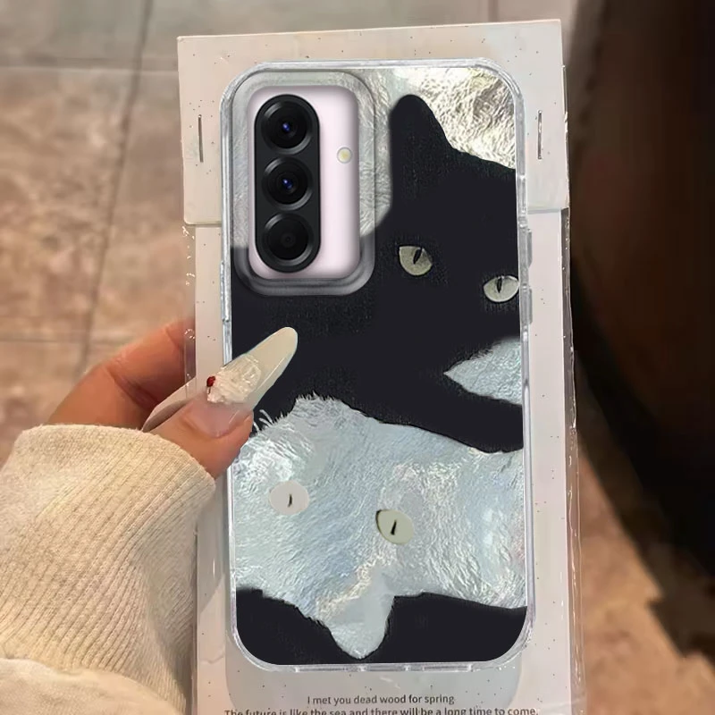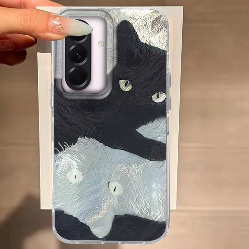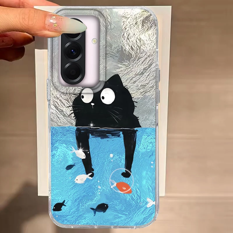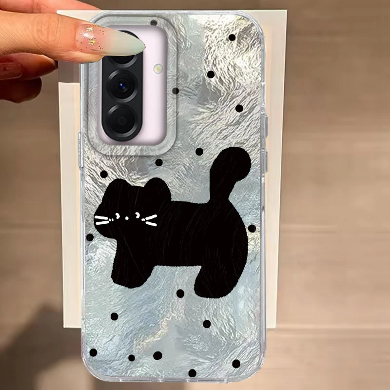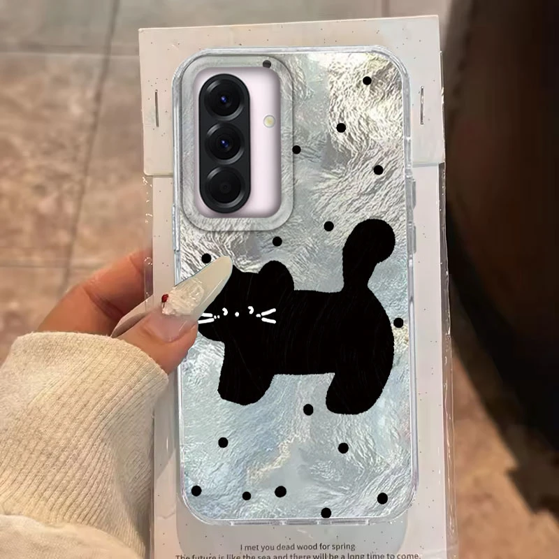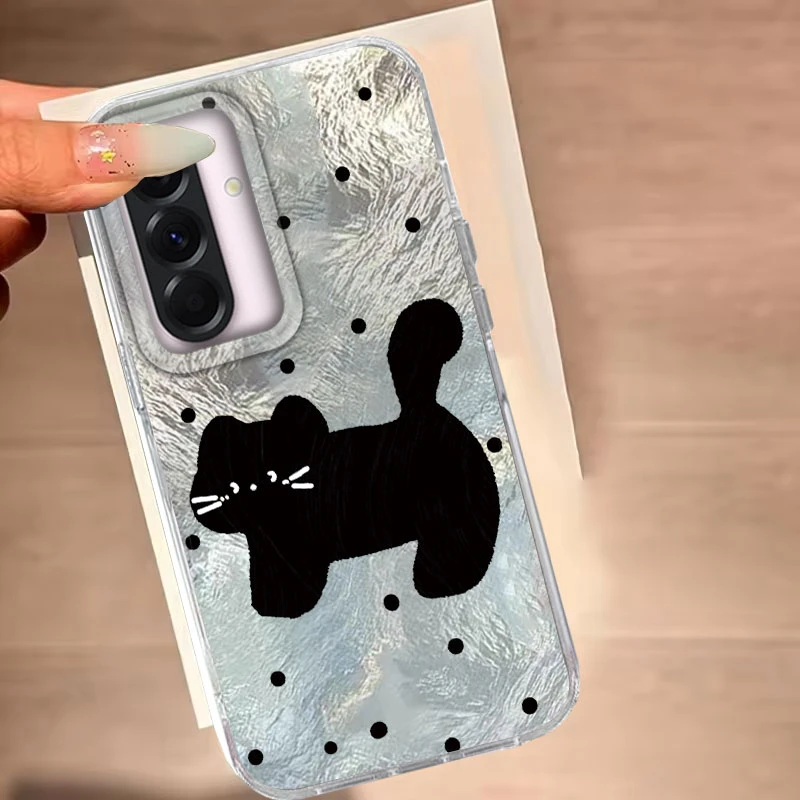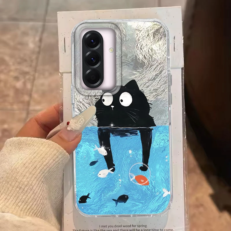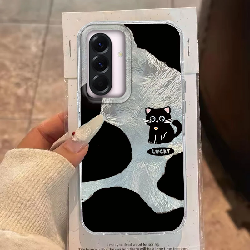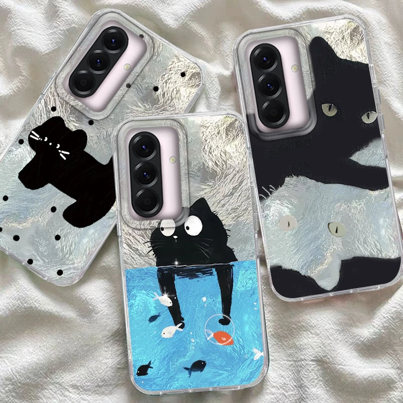 Funda para Samsung Galaxy A56 A36 A16 A25 A35 A26 S25 S24 Plus Ultra FE funda de teléfono gato negro dibujos animados para Samsung A55 bolsa suave