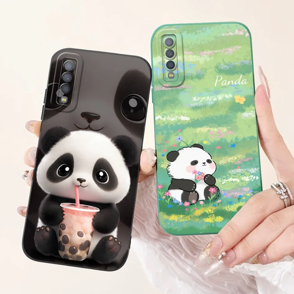 Para Samsung Galaxy A7 2018 Funda 2018 a prueba de golpes Funda Linda Panda Cámara protección suave TPU Funda para Samsung A7 parachoques