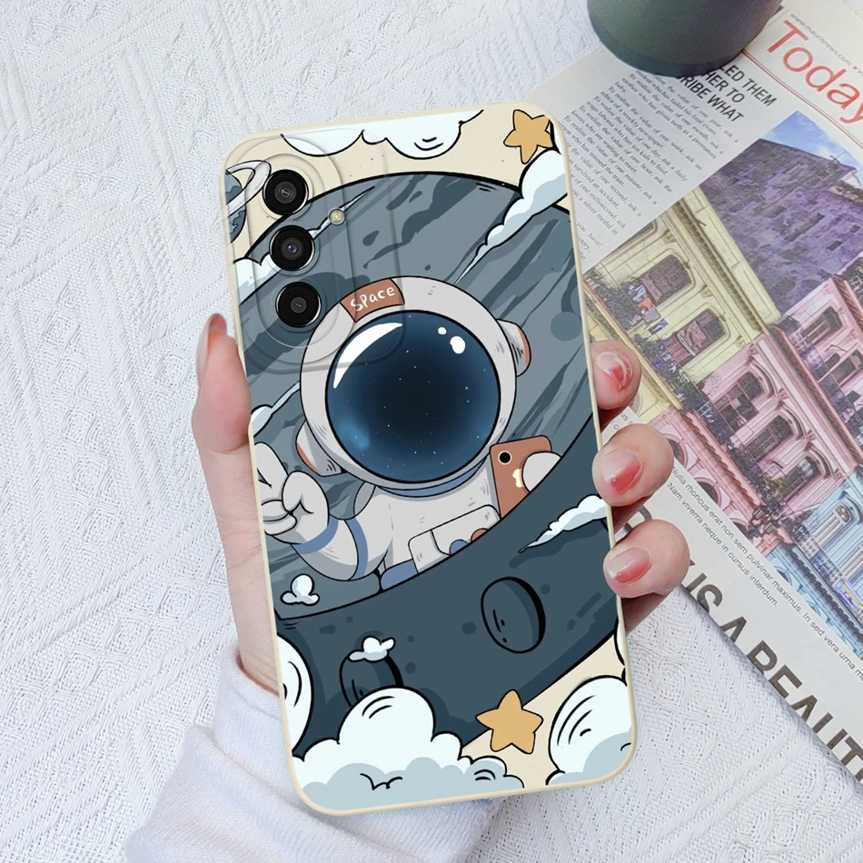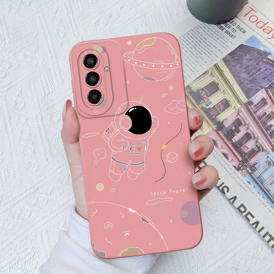 Comprar Funda para Samsung Galaxy F13 F23, cubierta trasera de protección de lente de silicona líquida suave con astronauta de flores para Samsung F 13 23
