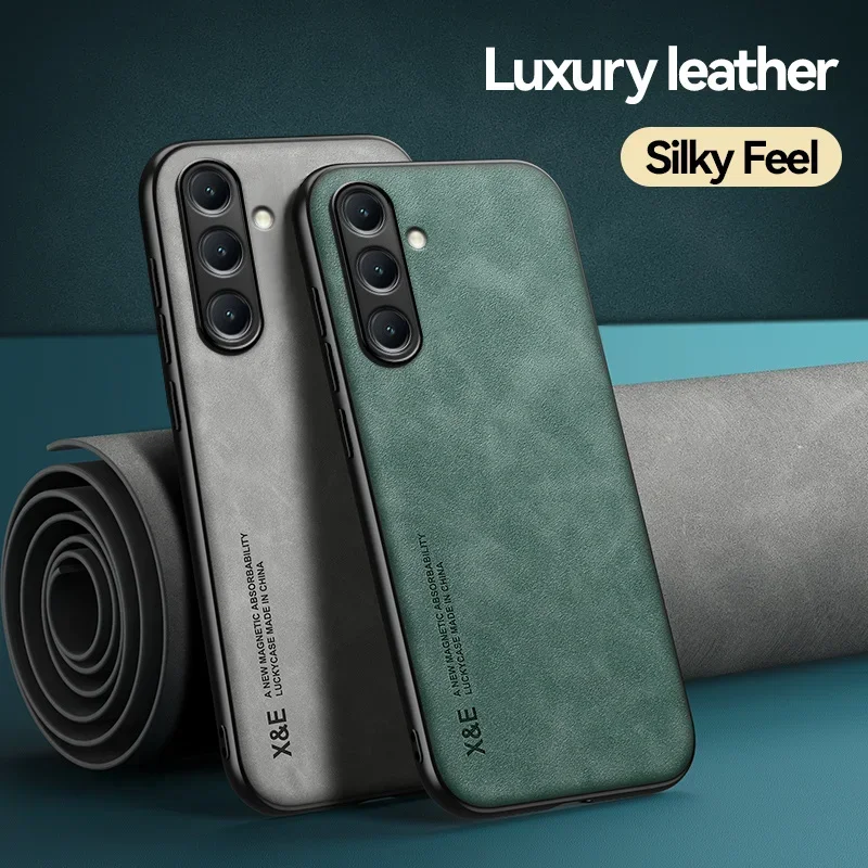 Comprar Funda para Samsung Galaxy M15 5G Funda de teléfono de cuero de silicona suave para Samsung M15 M 15 SM-M156B Funda trasera con soporte magnético para coche