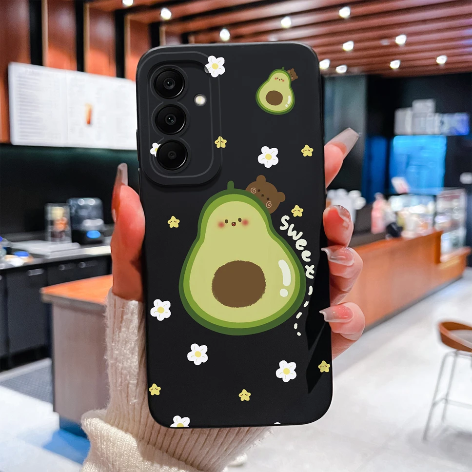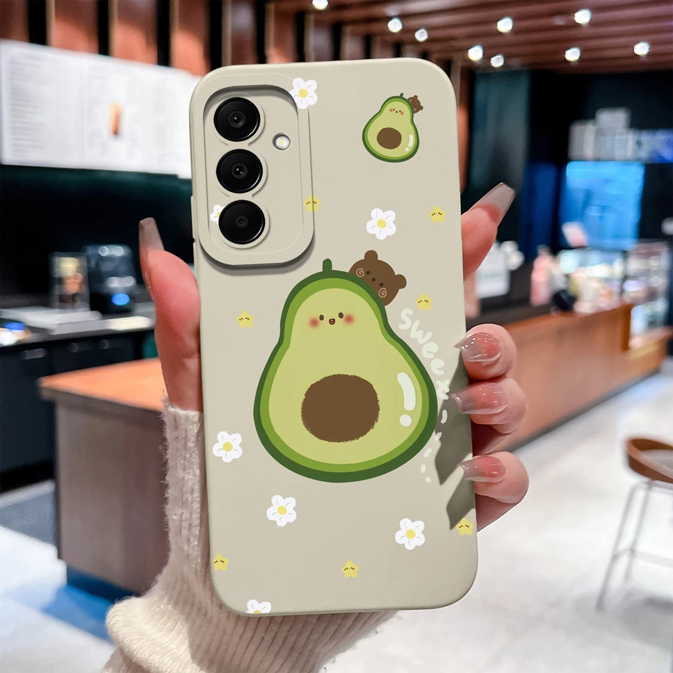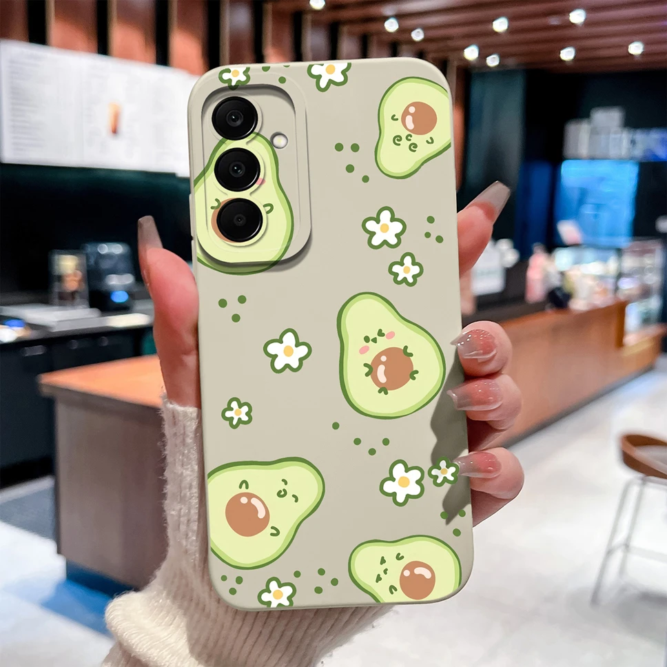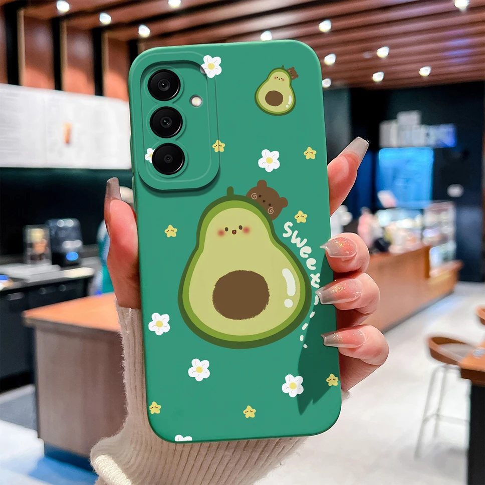 Funda para Samsung Galaxy M17 F17 5G, bonita carcasa de teléfono ligera de silicona líquida suave con diseño de gato y aguacate para GalaxyM17 F 17 - imagen 1