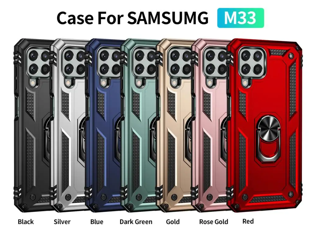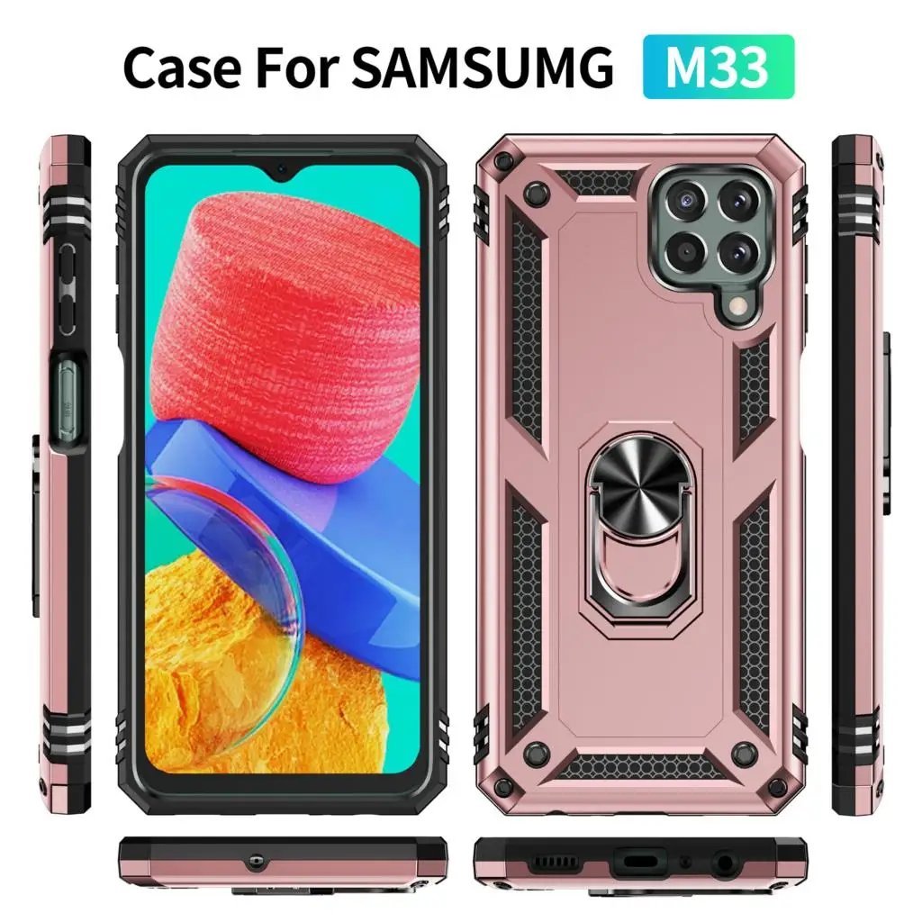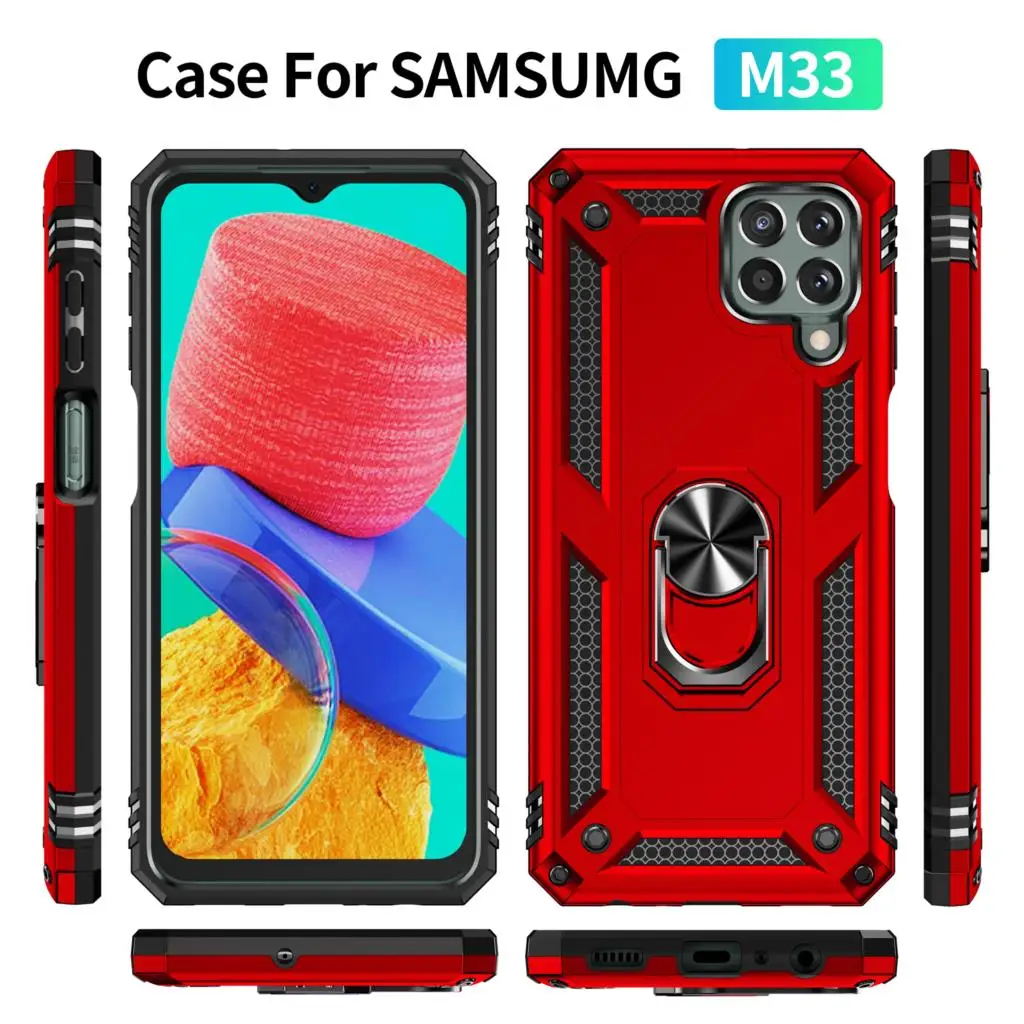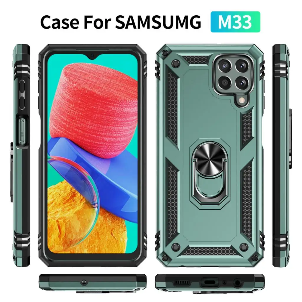 Case for Samsung Galaxy M33 Shockproof Bumper Armor Military Protective Magnetic Holder Ring Cover for Samsung M 33