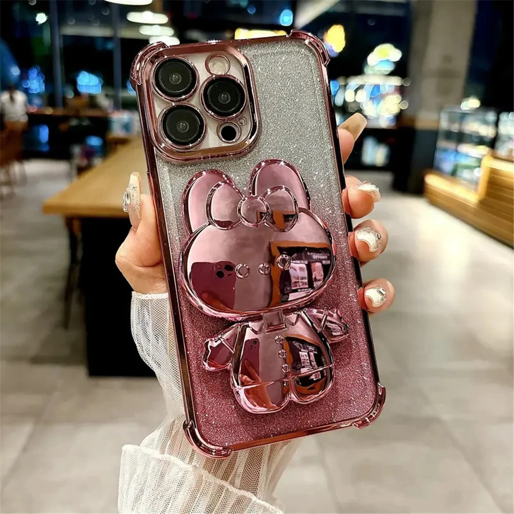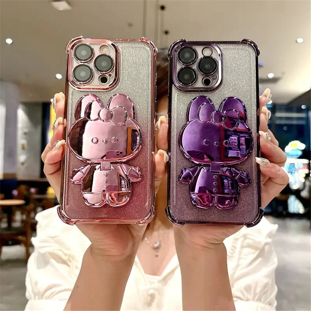 Funda para Samsung Galaxy Note 20 Ultra Note 10 Plus espejo de maquillaje Invisible soporte de conejo cubierta de silicona suave con purpurina a prueba de golpes