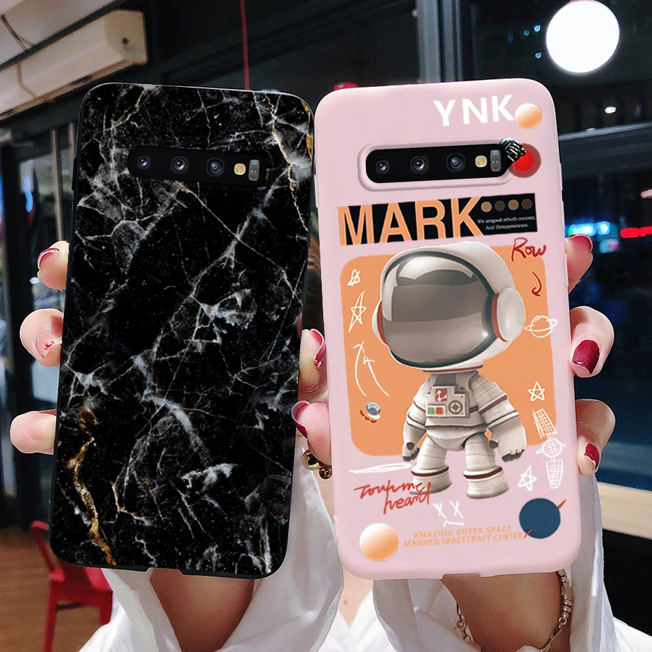 Comprar Funda para Samsung Galaxy S10 Plus S10e S10 +, carcasa protectora trasera de TPU suave, astronauta negro, mármol