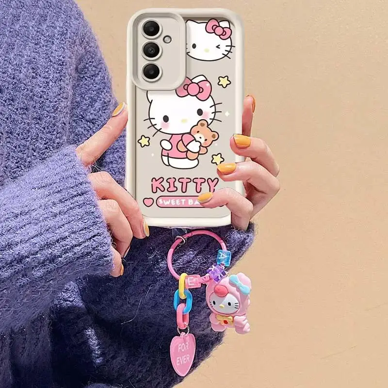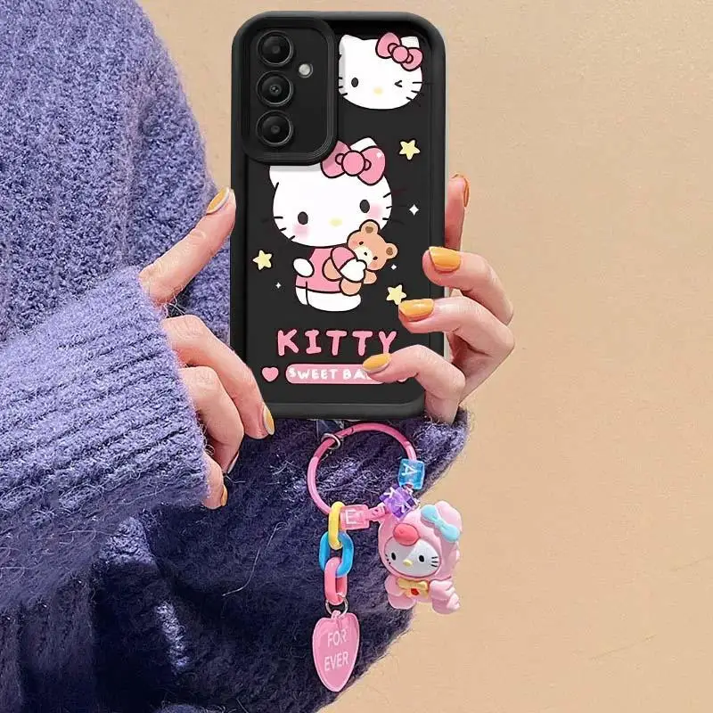 Comprar Funda para Samsung Galaxy S21 S20 S24 FE S25 S23 Ultra S22 Plus A55 5G A54 A35 A34 A23 A24 A52 A53 Linda funda colgante de Hello Kitty