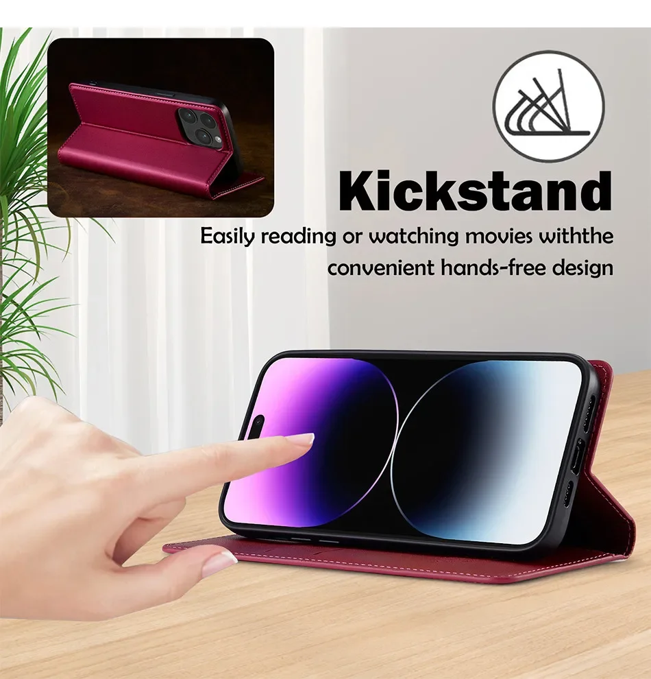 ●Función: soporte abatible + billetera plegada + ranura para tarjetas + clip para billetes + marco de fotos