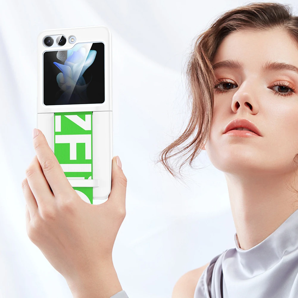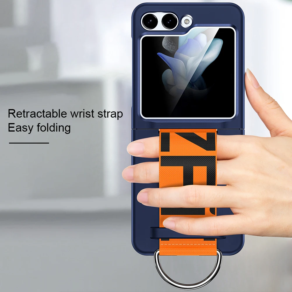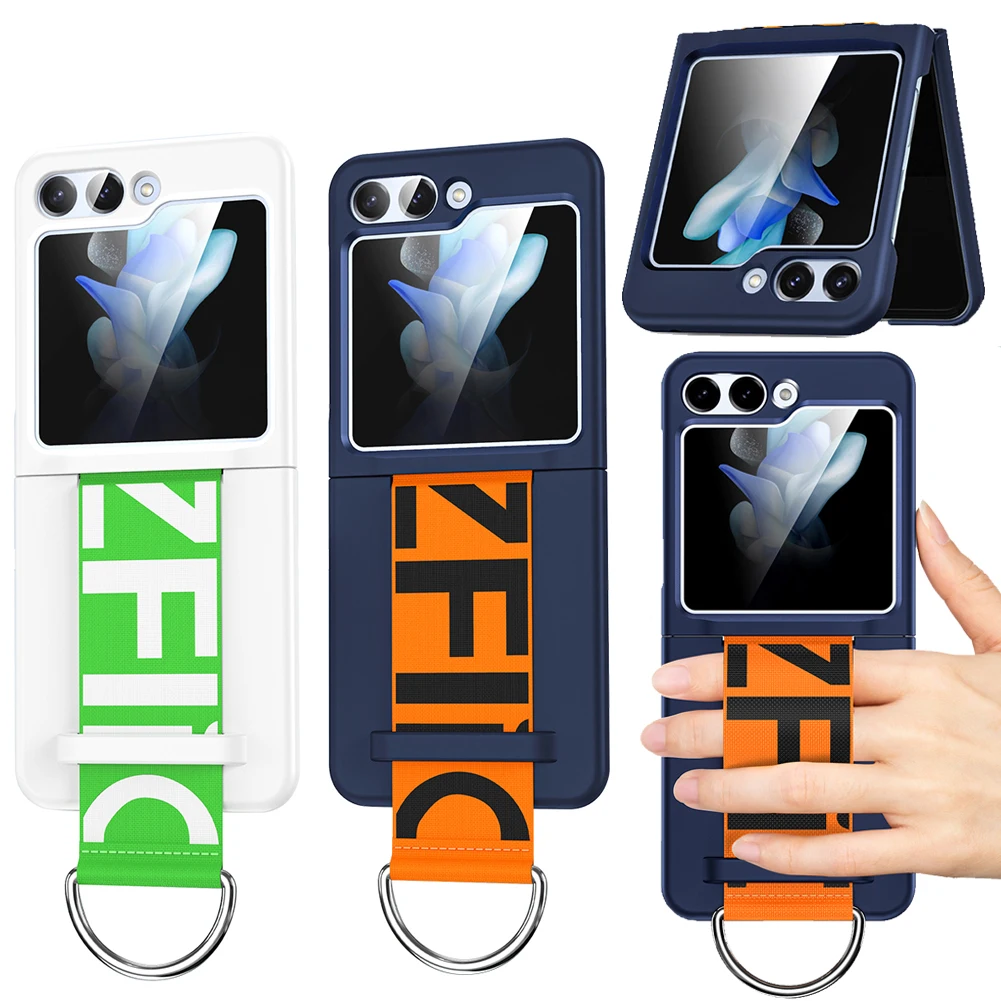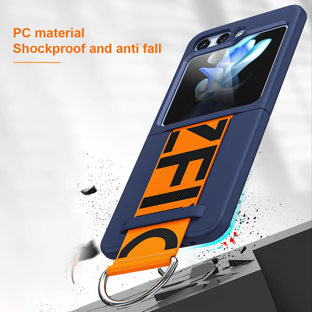 Funda protectora trasera para PC, anillo retráctil para correa de muñeca, funda protectora ultrafina, carcasa a prueba de arañazos para Samsung Galaxy Z Flip 5