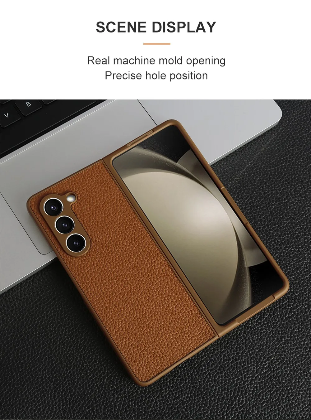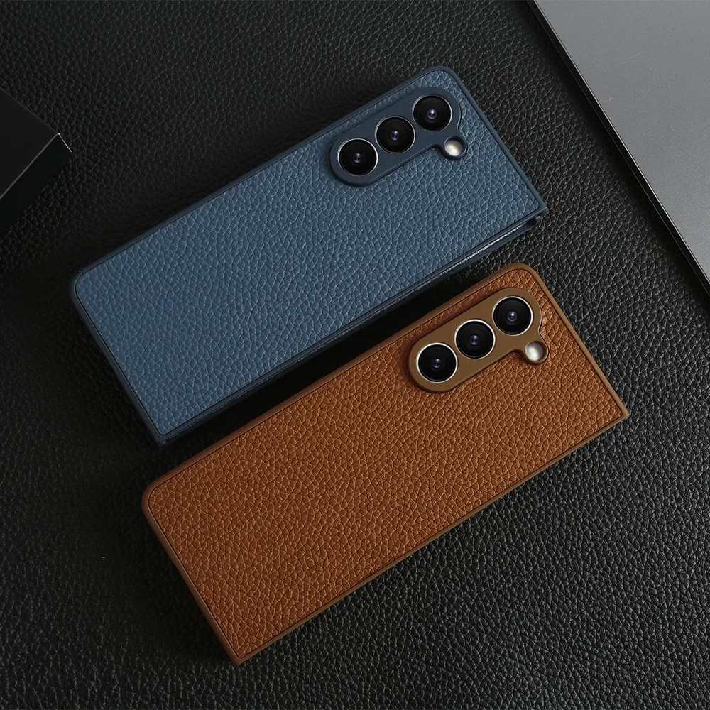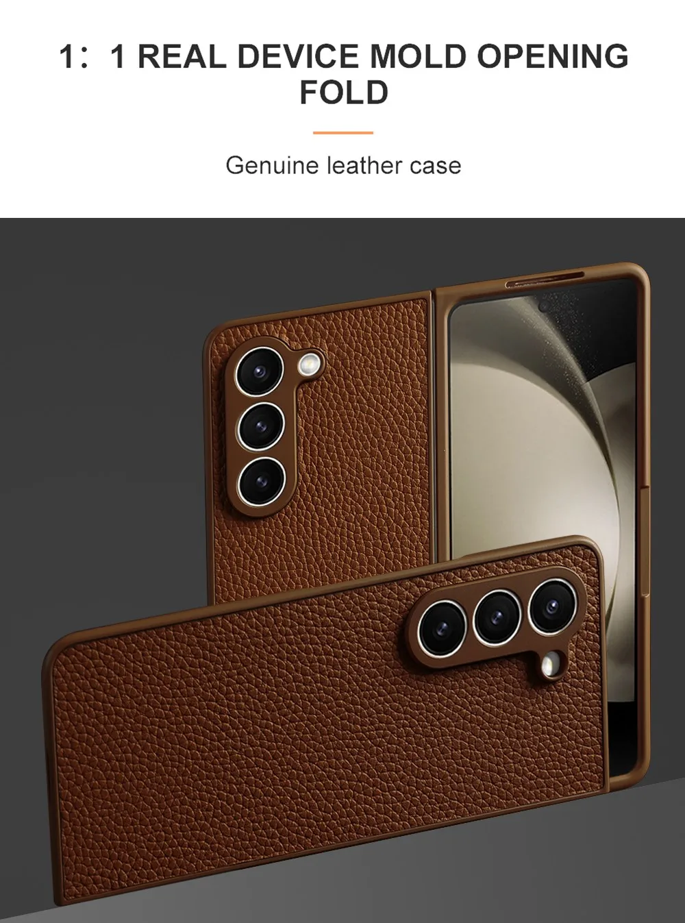 For Case Samsung Galaxy Z Fold 5 Fundas Luxury Litchi pattern Genuine Leather Cases for galaxy Flod5 phone Cover Coque Shell