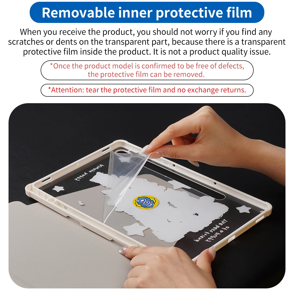 Cuando reciba el producto, no debe preocuparse si encuentra rayones o abolladuras en la parte transparente, porque hay una película protectora transparente dentro del producto.No es un problema de calidad del producto.