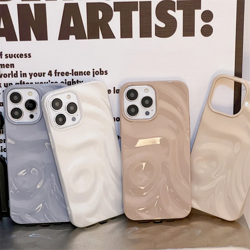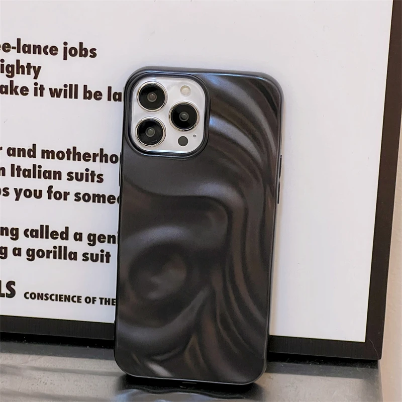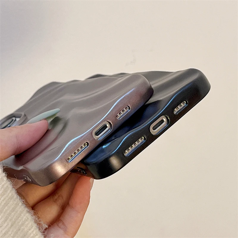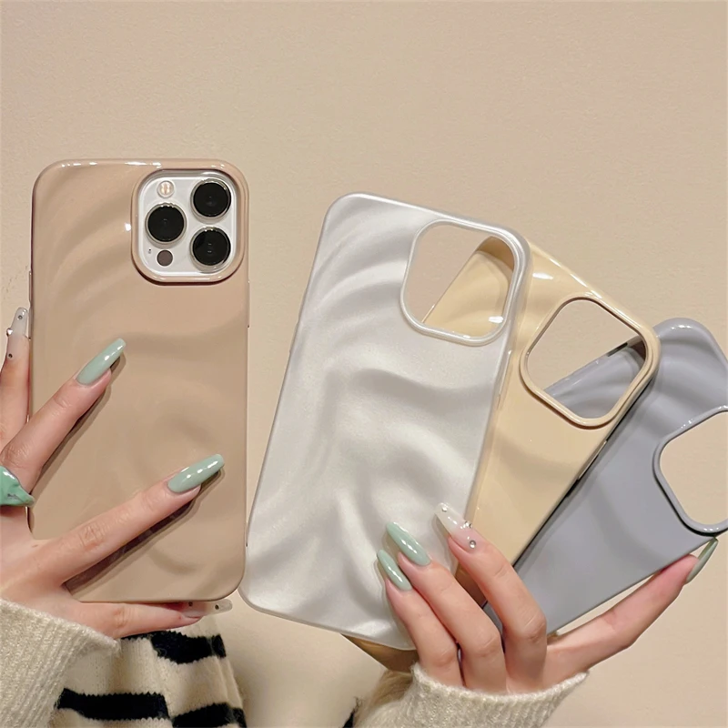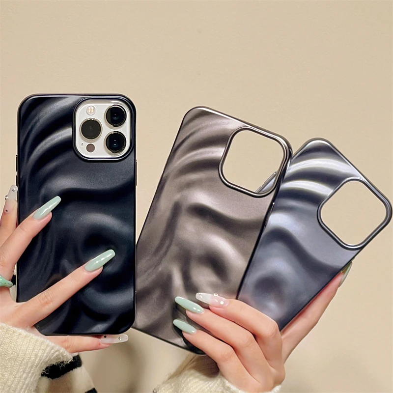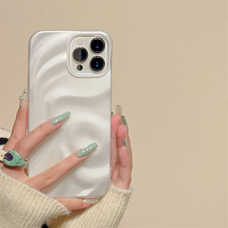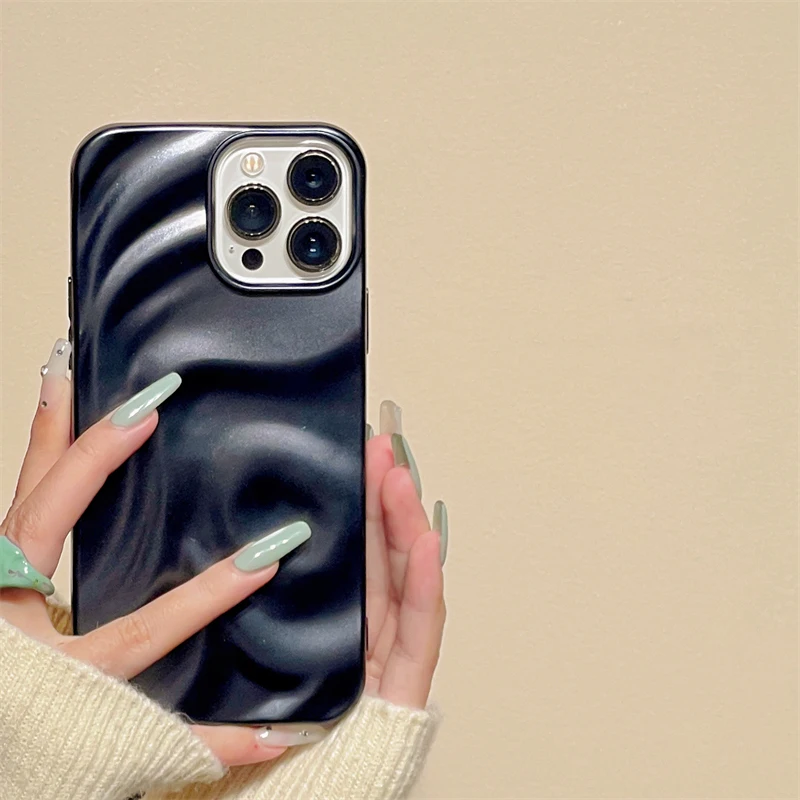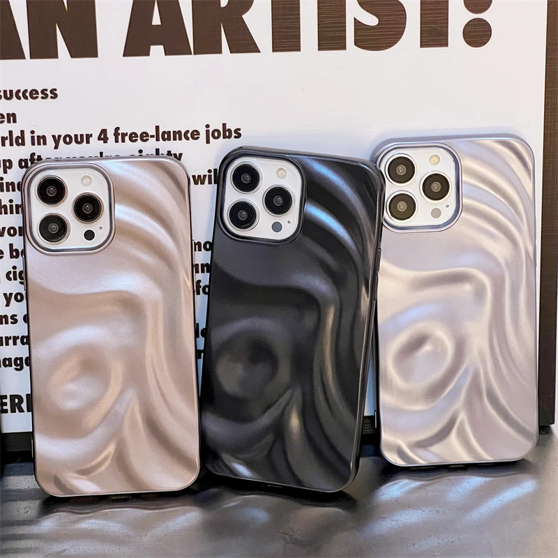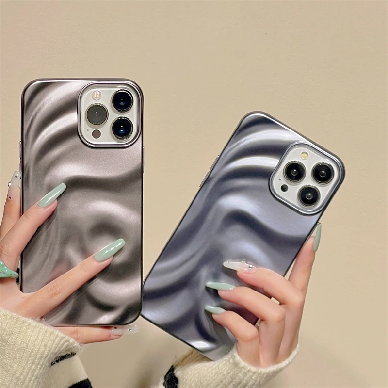Funda antiarrugas plisada de seda 3D de plata de lujo para iPhone 14 13 12 11 Pro Max fundas de silicona suave