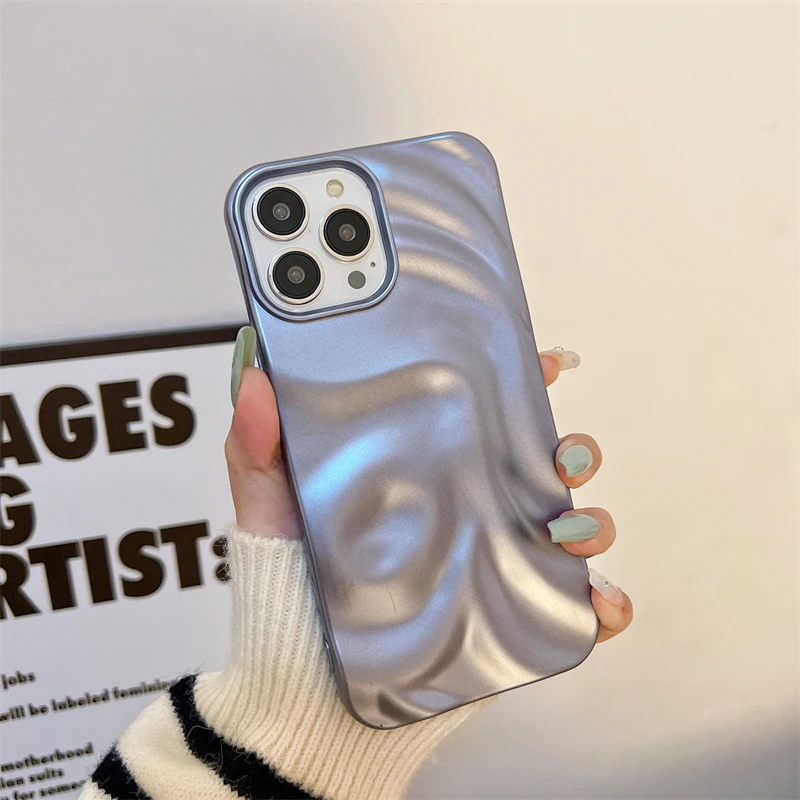 Funda antiarrugas plisada de seda 3D de plata de lujo para iPhone 14 13 12 11 Pro Max fundas de silicona suave