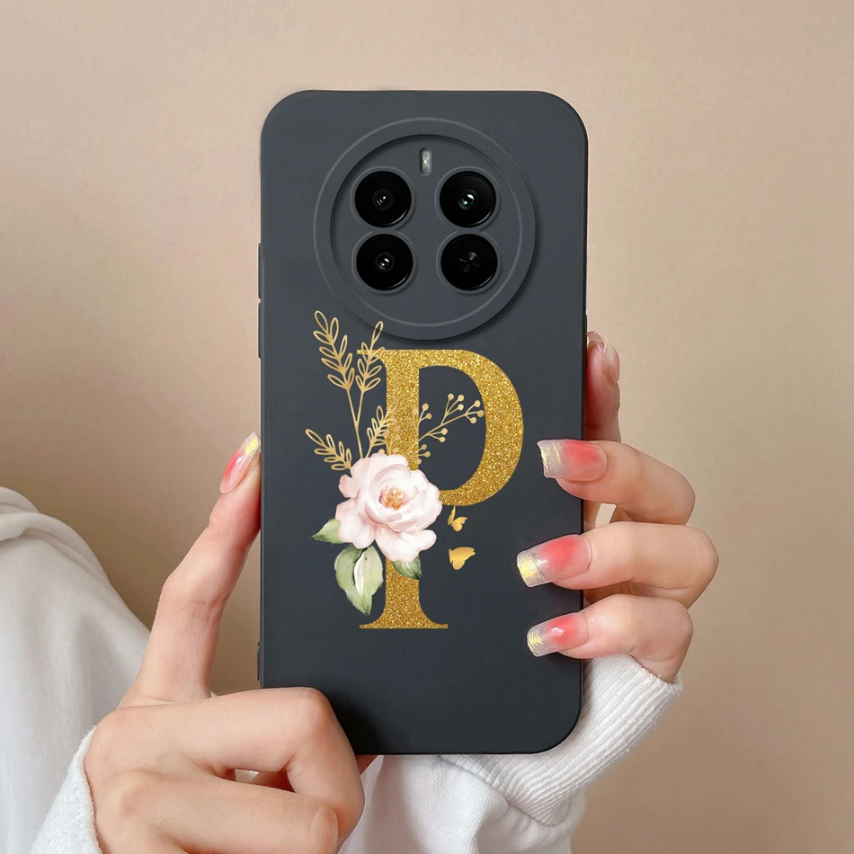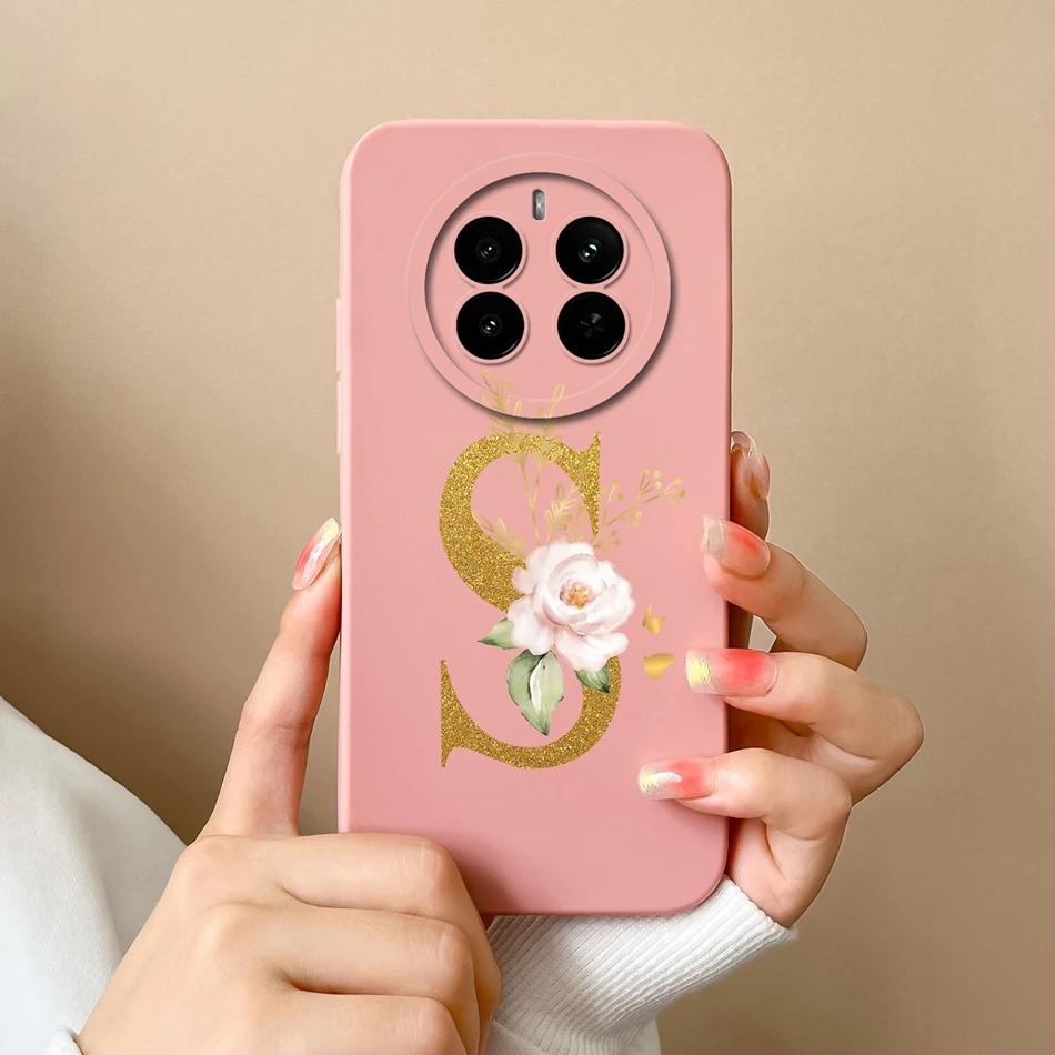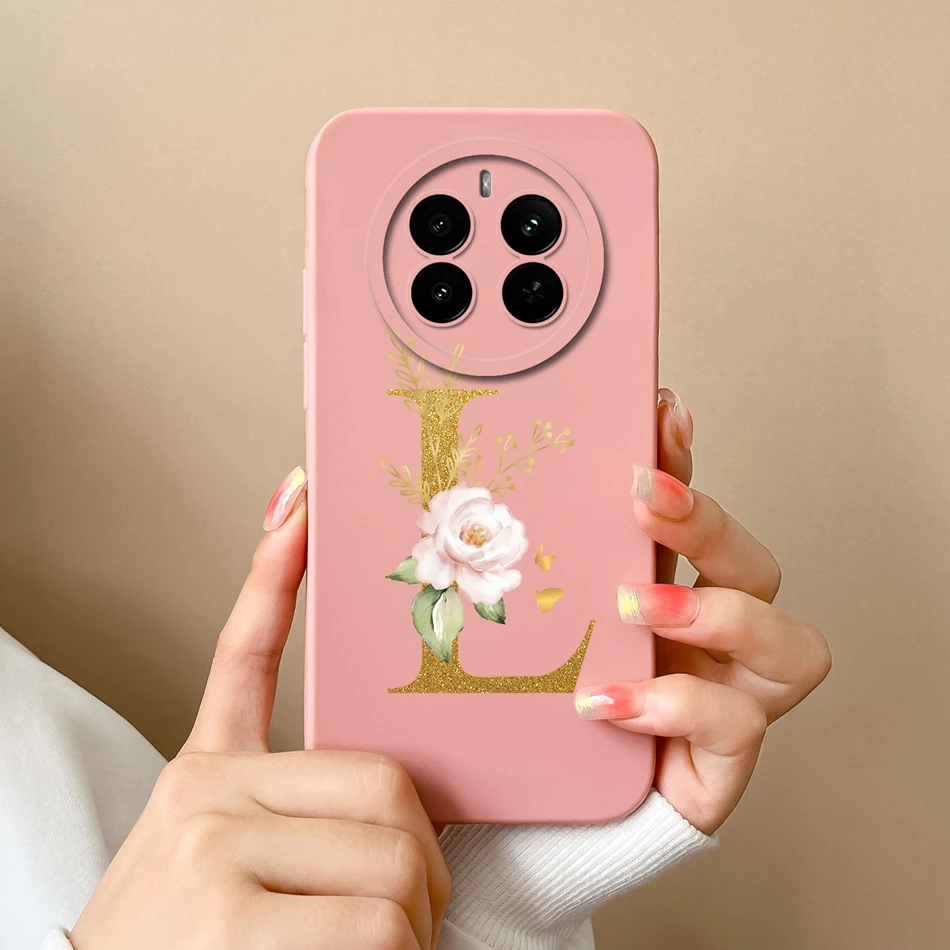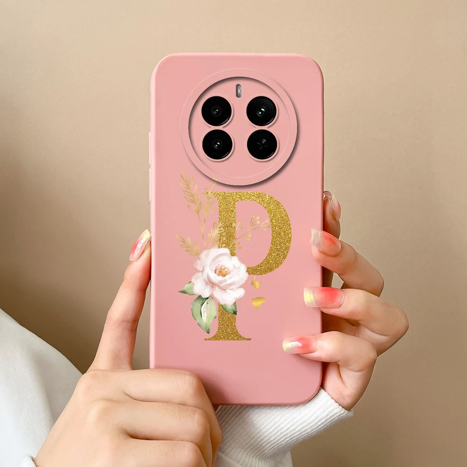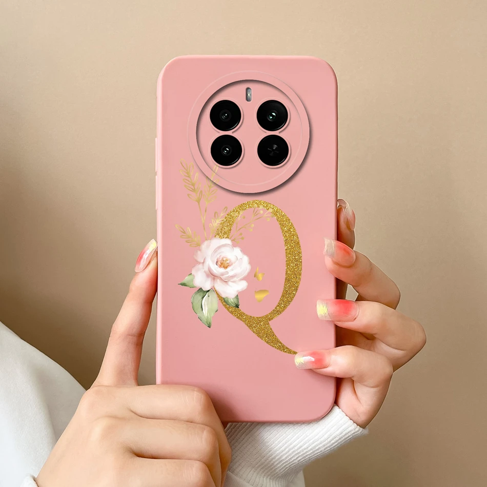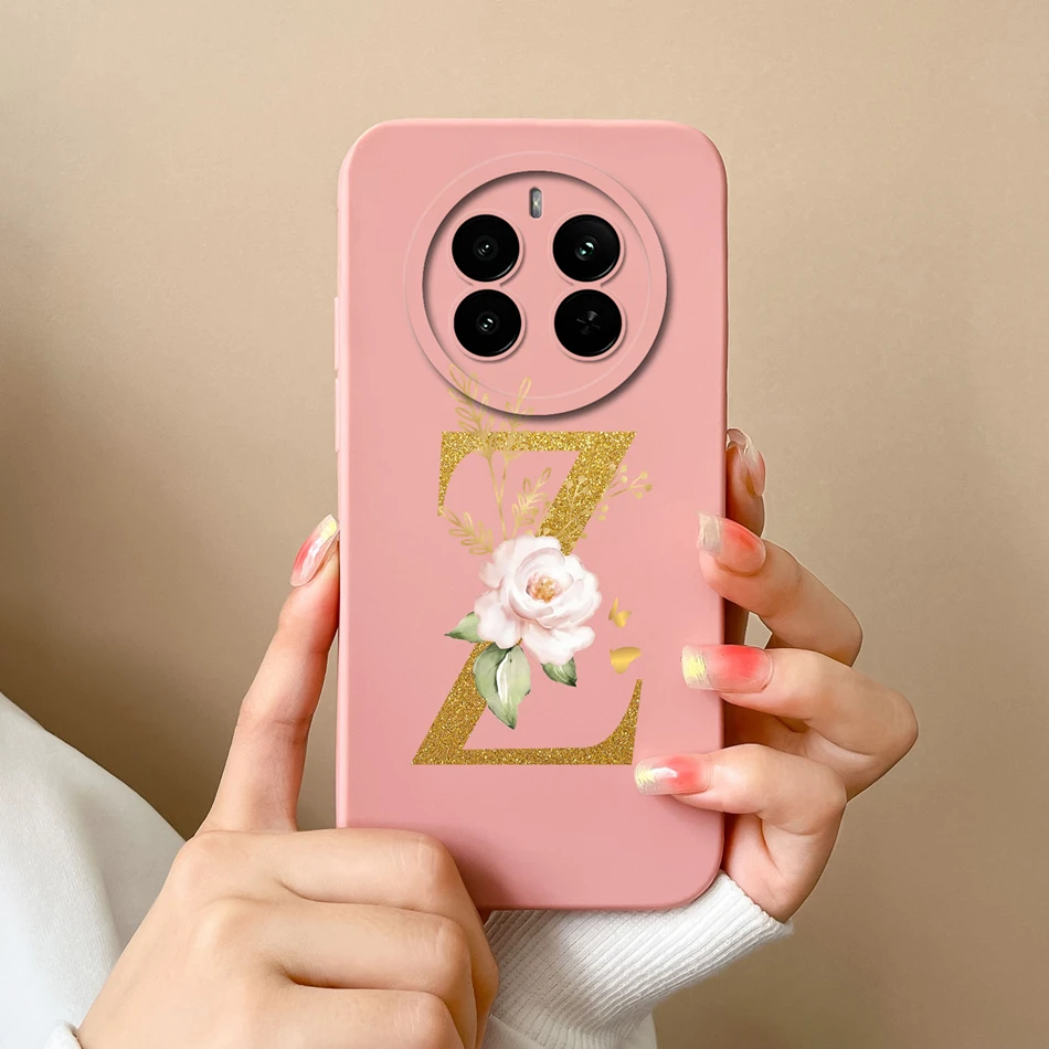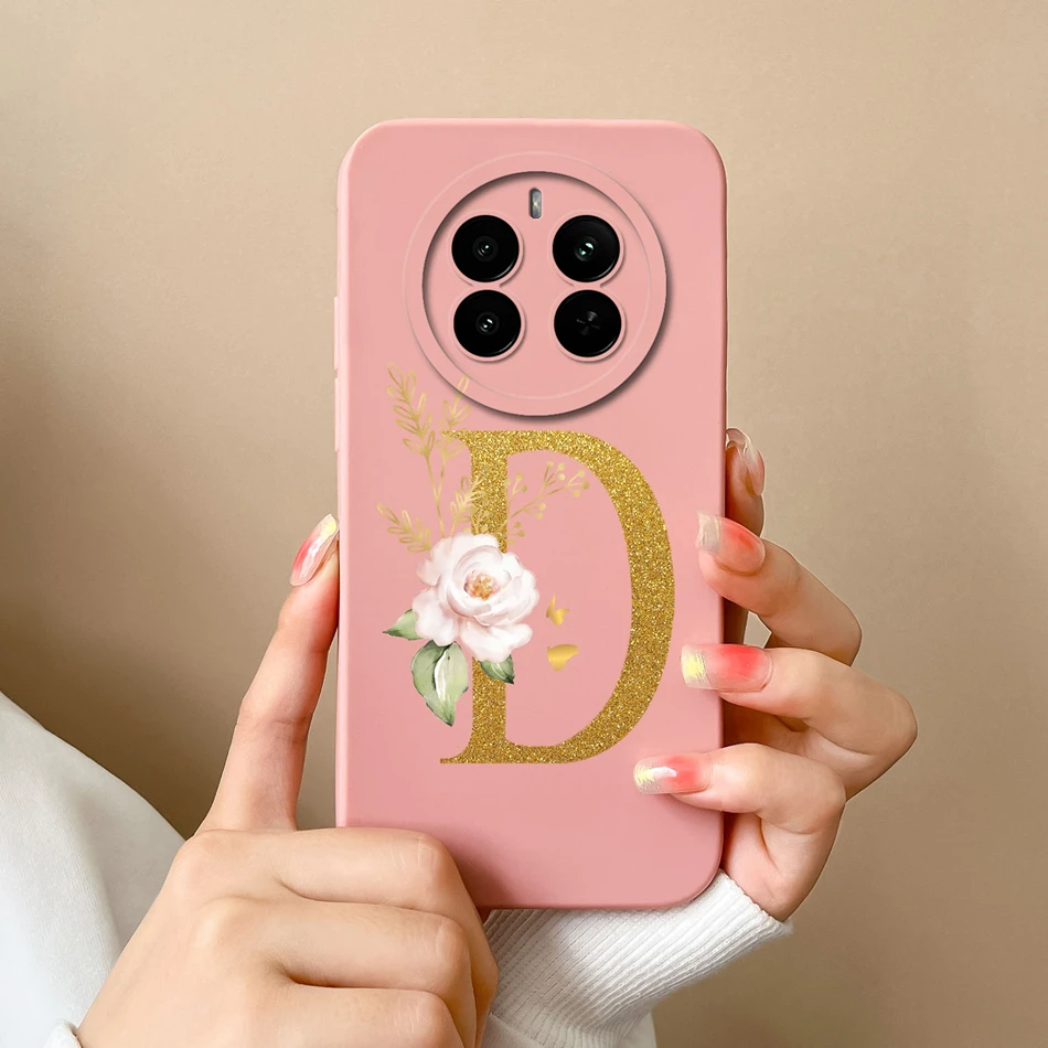 Comprar Funda sencilla para Realme 12 Lite Pro Plus, lente de cámara de silicona líquida suave, cubierta protectora con letras rosas para Oppo Realme12 +