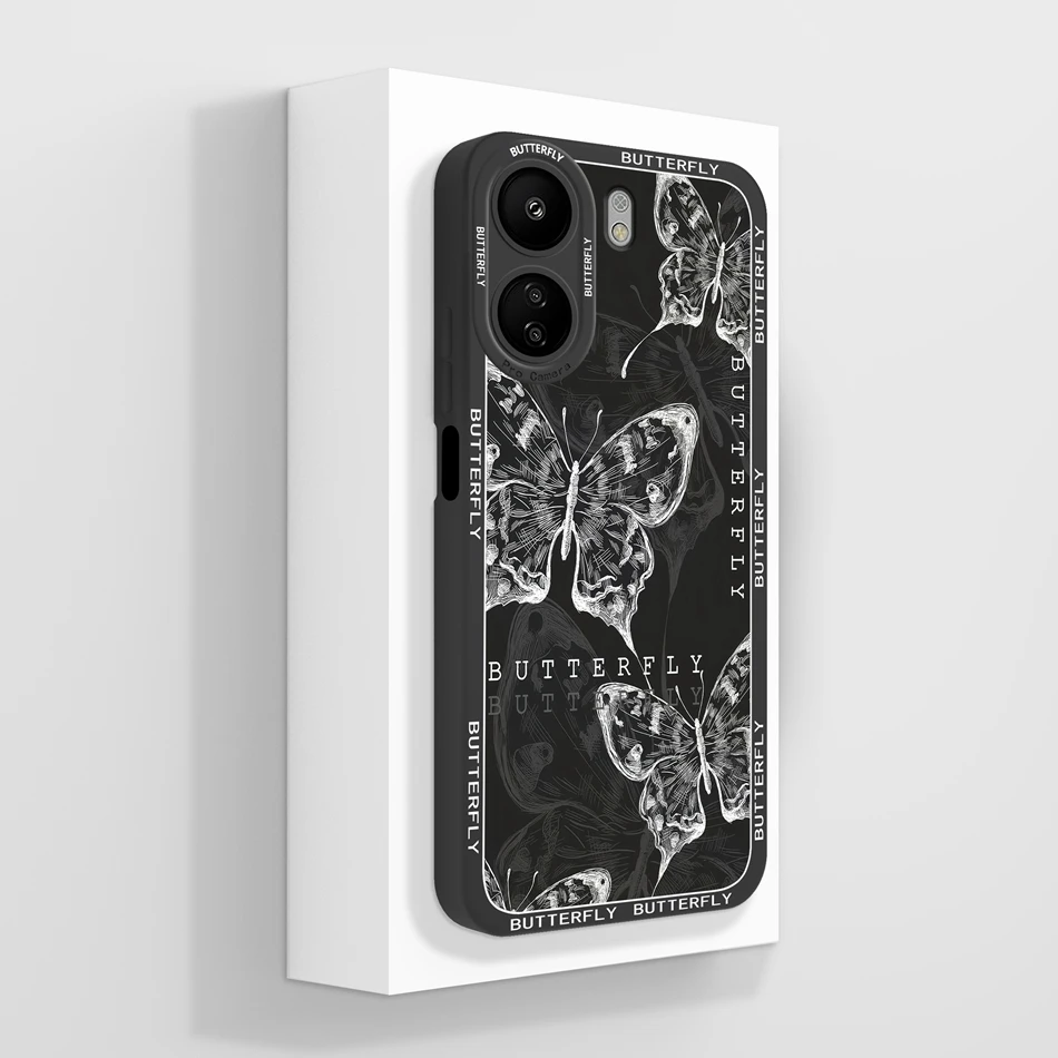 Comprar Funda sencilla para teléfono Poco C65 4G, carcasa elegante con mariposa para Xiaomi POCO C 65, fundas traseras de silicona líquida suave a la moda