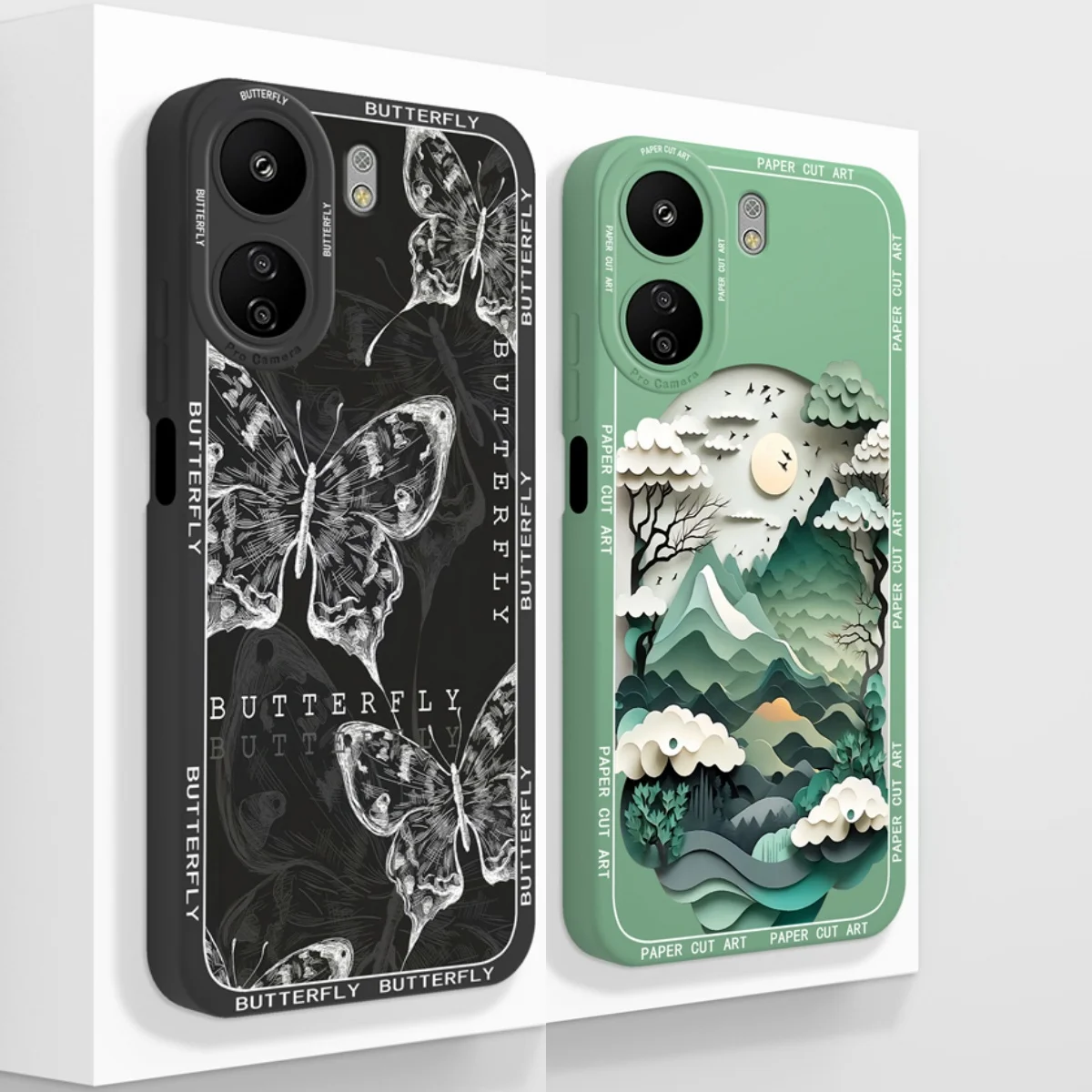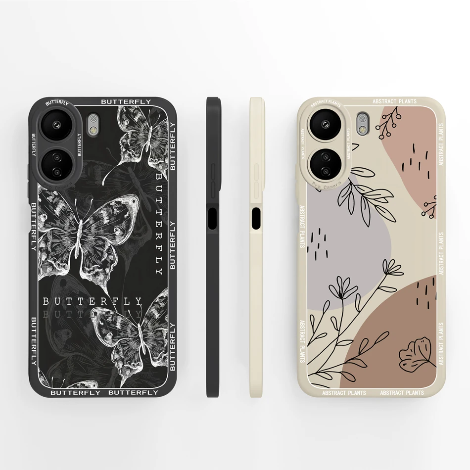 Comprar Funda sencilla para teléfono Poco C65 4G, carcasa elegante con mariposa para Xiaomi POCO C 65, fundas traseras de silicona líquida suave a la moda