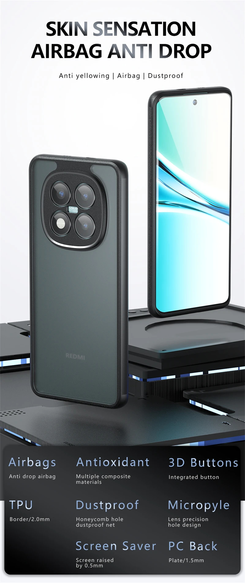 Funda Frosted Feel para Xiaomi Redmi Note 15 Pro Plus funda de silicona mate TPU piel PC Protector funda Redmi Note 15 Pro Plus