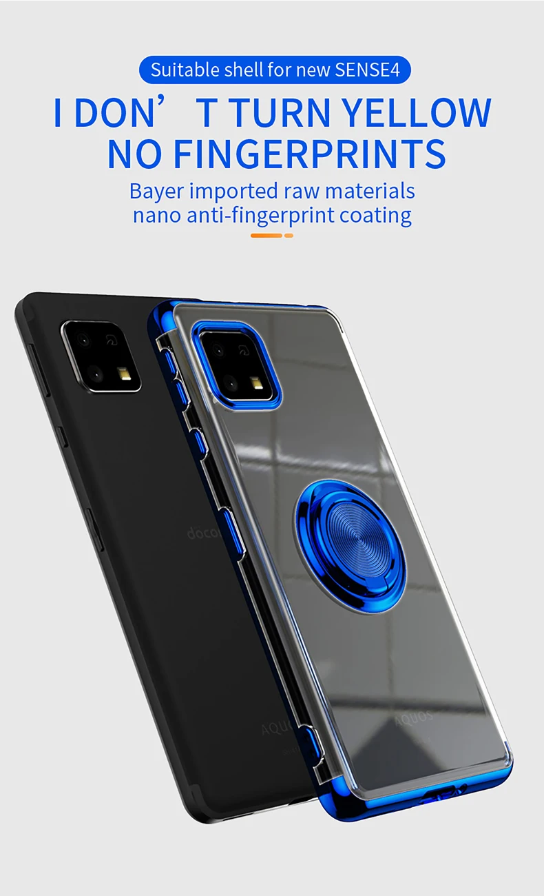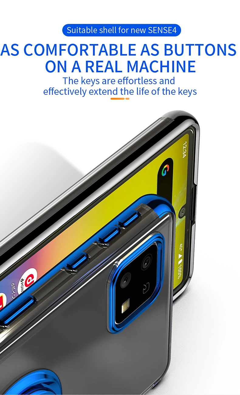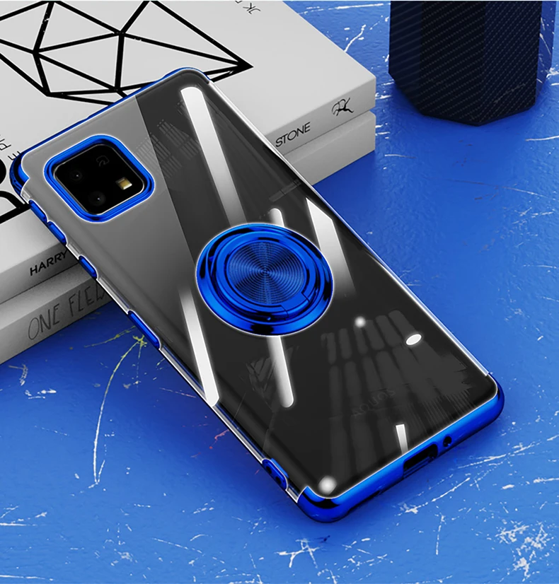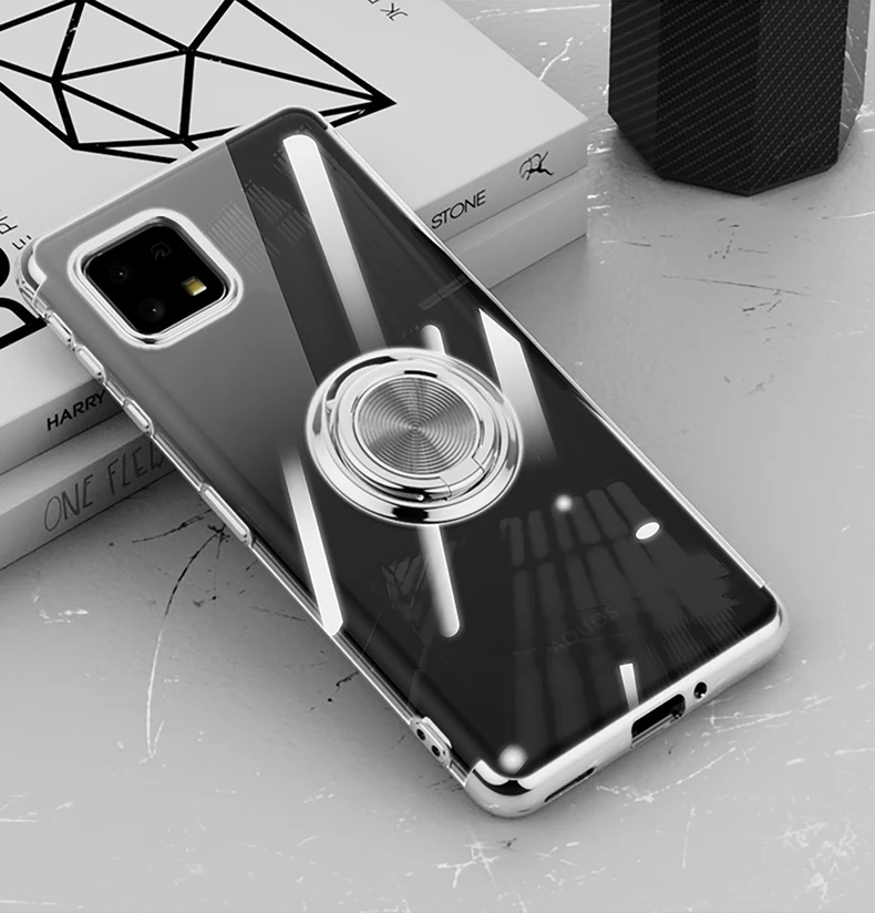 Funda para Sharp Aquos Sense 4, soporte para anillo de dedo, soporte para coche, lente protectora de silicona suave, funda trasera transparente para Airbag