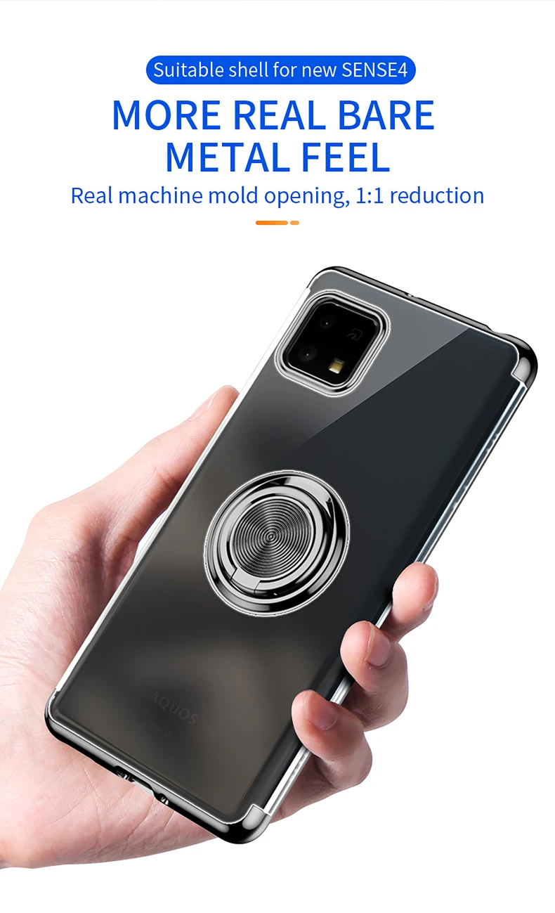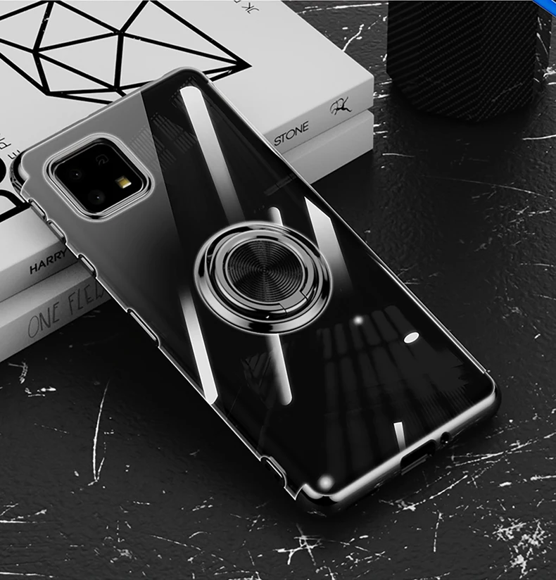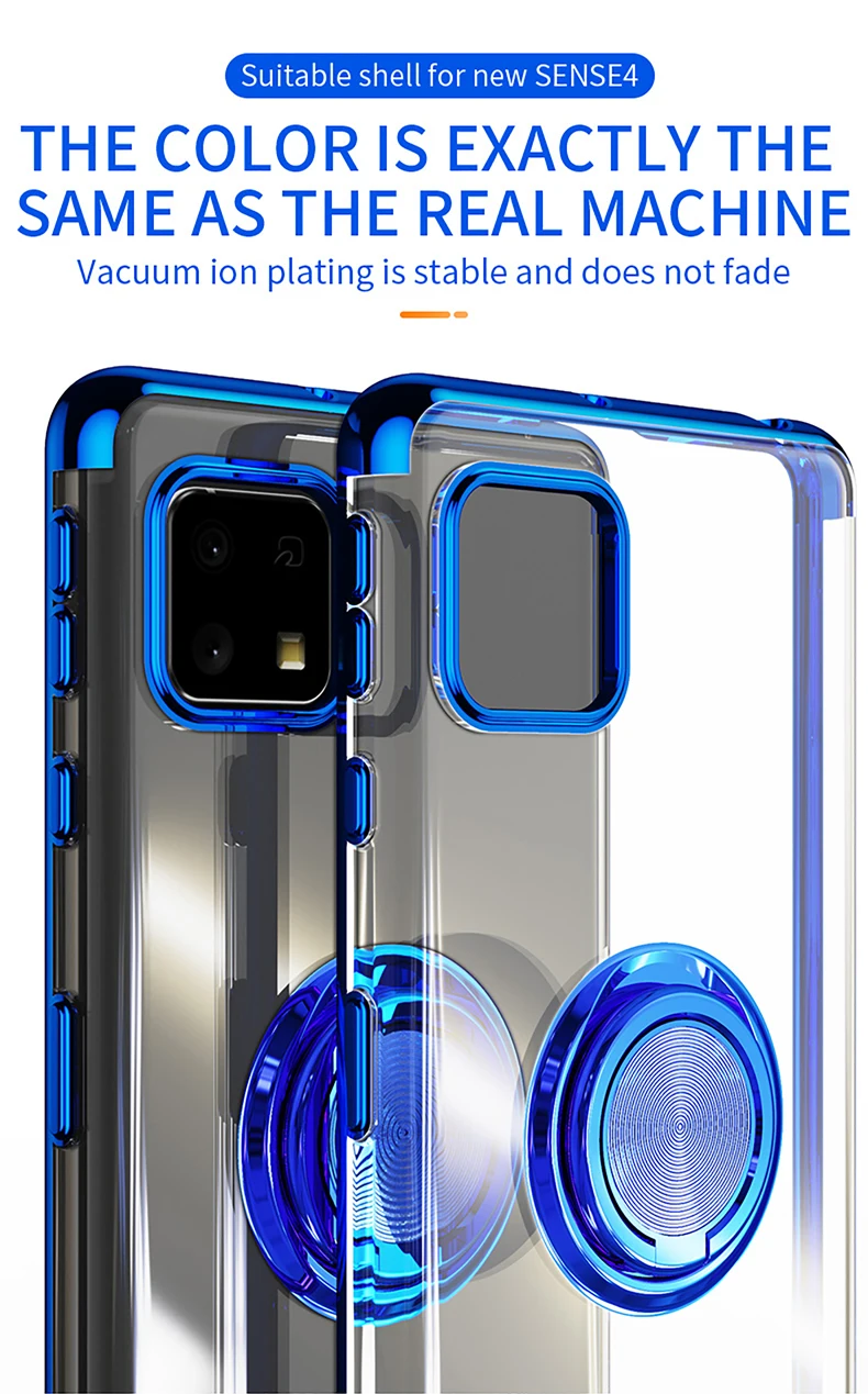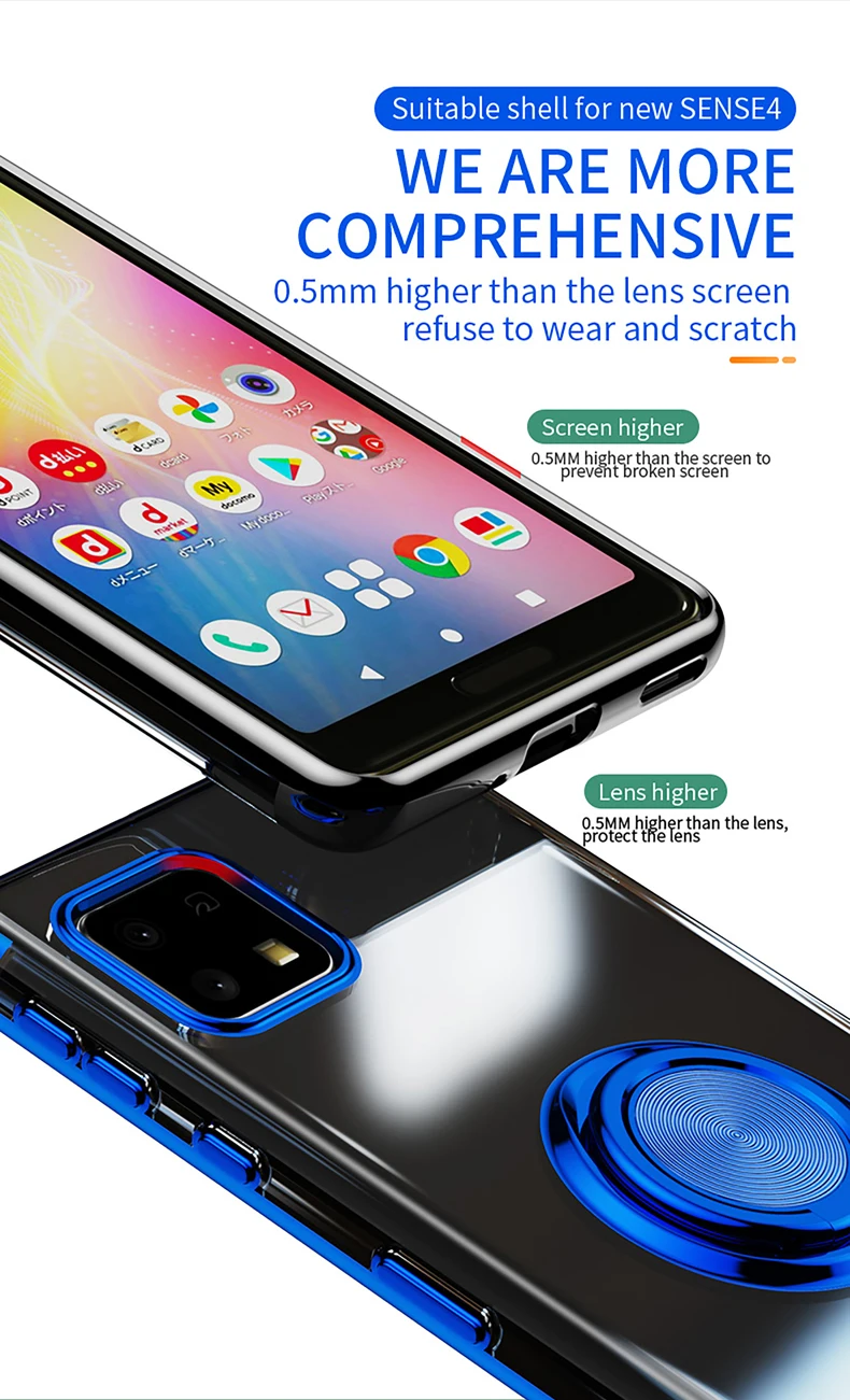 Funda para Sharp Aquos Sense 4, soporte para anillo de dedo, soporte para coche, lente protectora de silicona suave, funda trasera transparente para Airbag