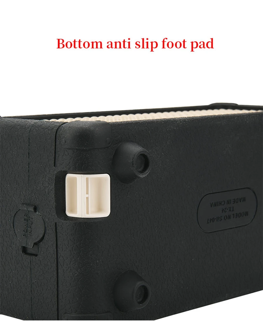4.Diseño de almohadilla inferior para el pie, lo que hace que el altavoz sea más estable cuando se coloca en el escritorio;