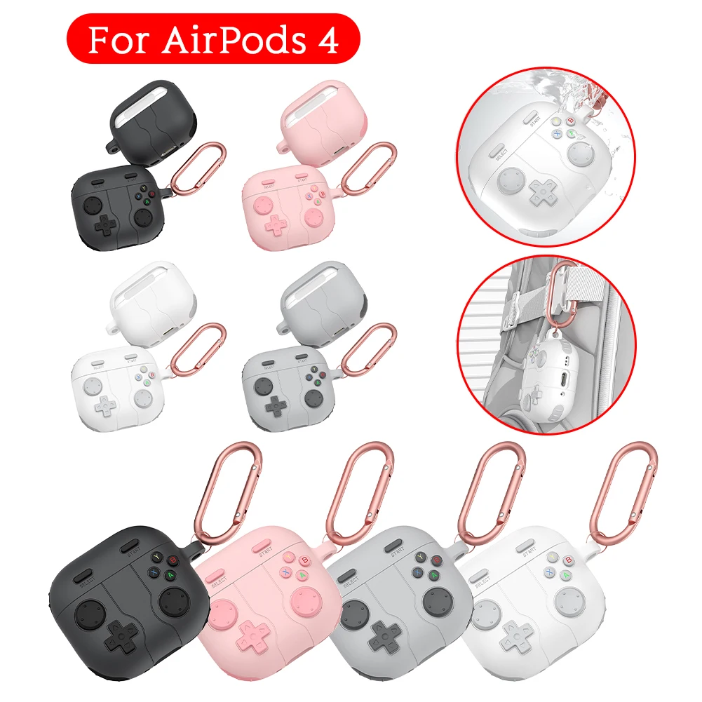 Comprar Funda de silicona para Apple Airpods 4, cubierta 3D para Gamepad, con llavero, a prueba de polvo, novedad de 2024