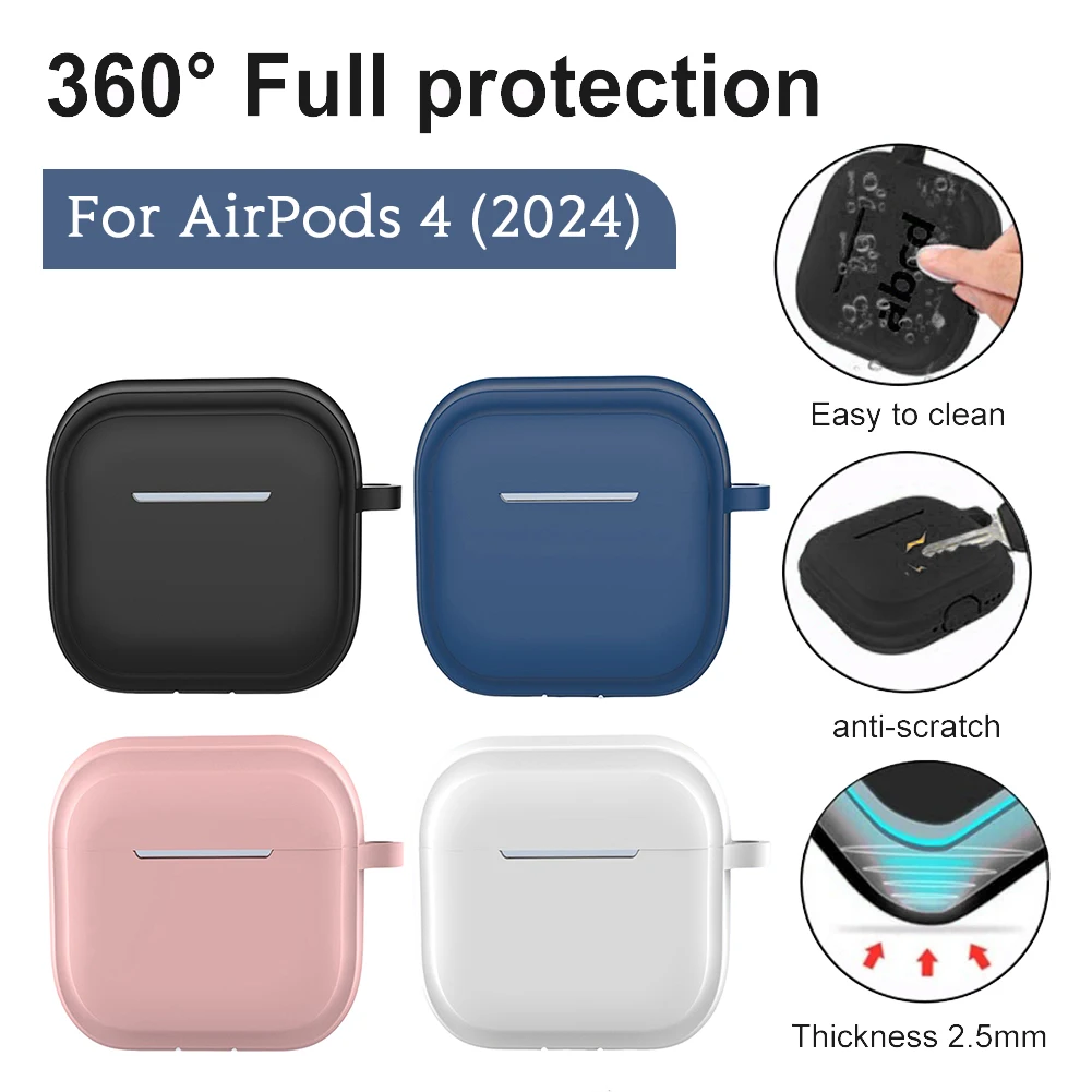 Comprar Funda de silicona para Apple Airpods 4, funda protectora con llavero para auriculares AirPods 4 2024, novedad de 2024