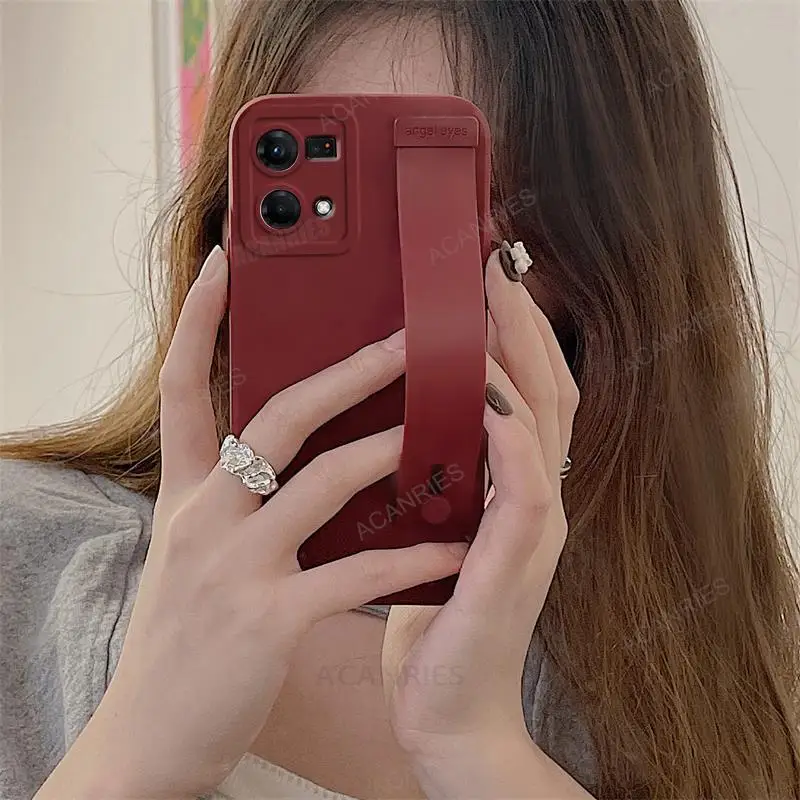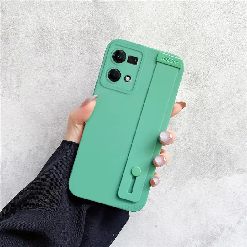 Funda de silicona con banda de mano para Oppo Reno 7 6 5 Lite Reno7 Reno5 A54 A74 A57 4G 5g A16 A15, funda con soporte para correa de muñeca A5 A9 2020