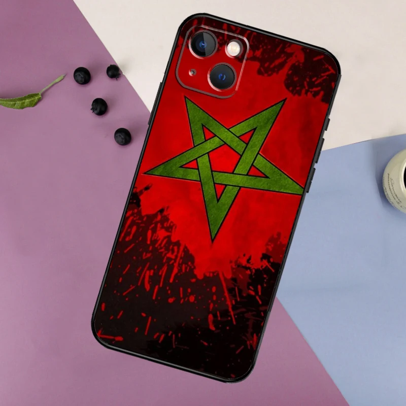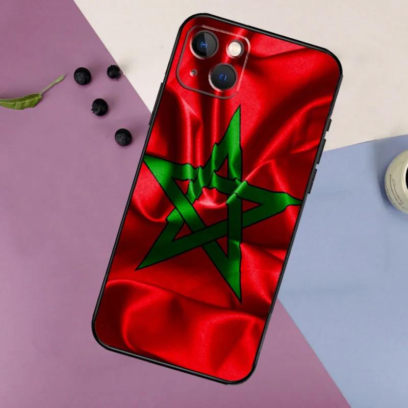 Funda de silicona con bandera marroquí para iPhone 17 15 14 13 12 11 Pro Max 16 Plus 12 13 Mini 16e 17 Air contraportada