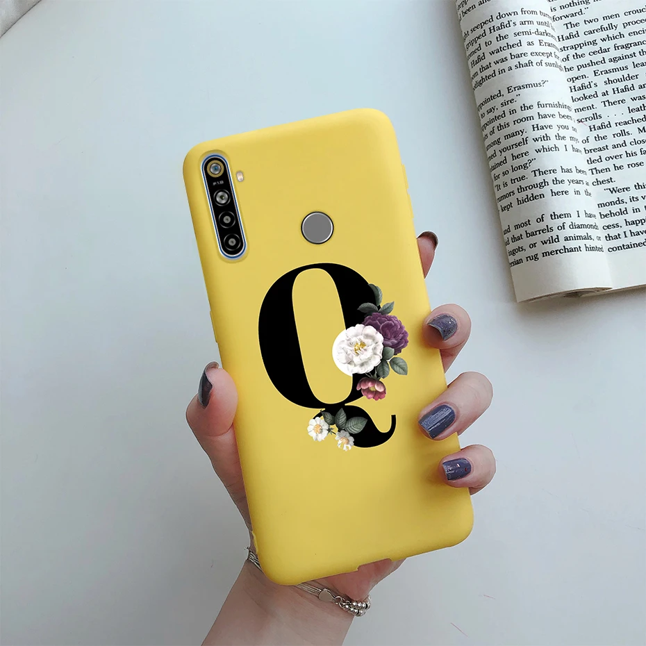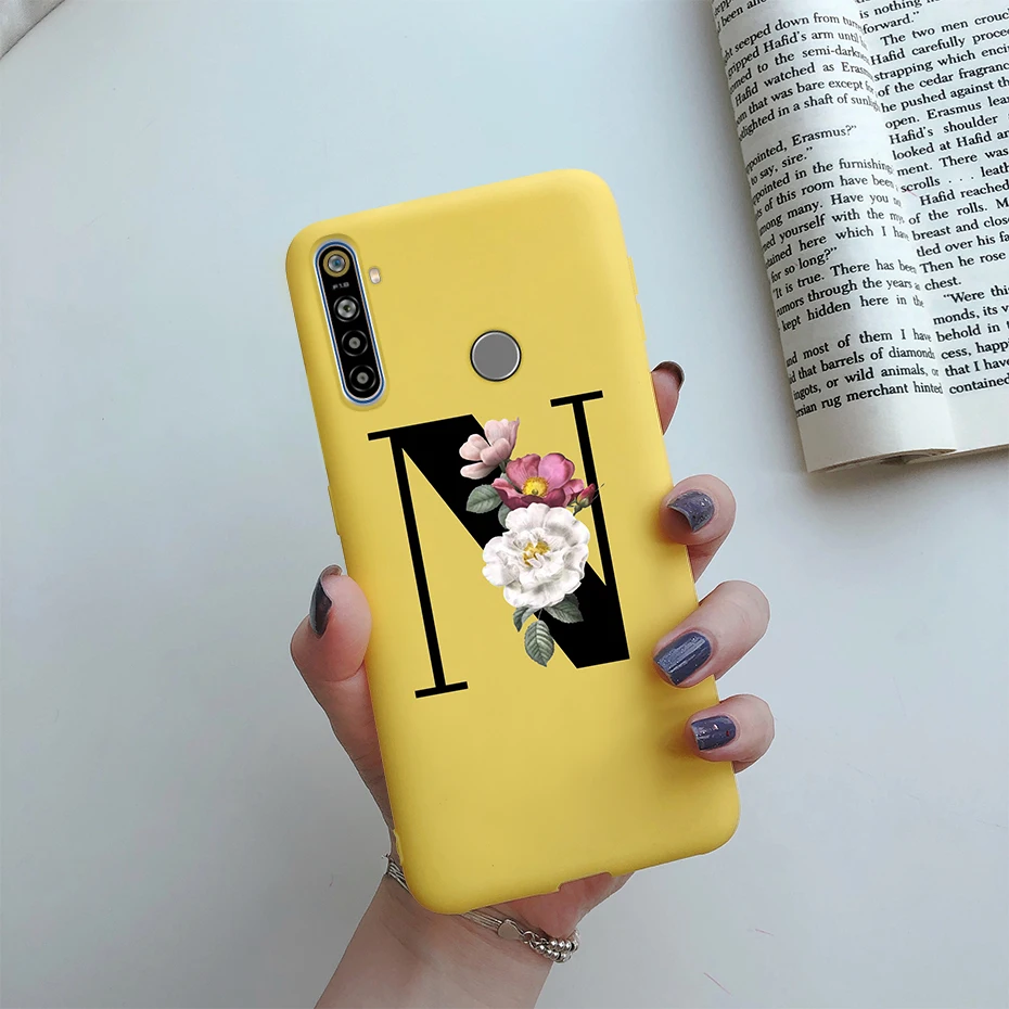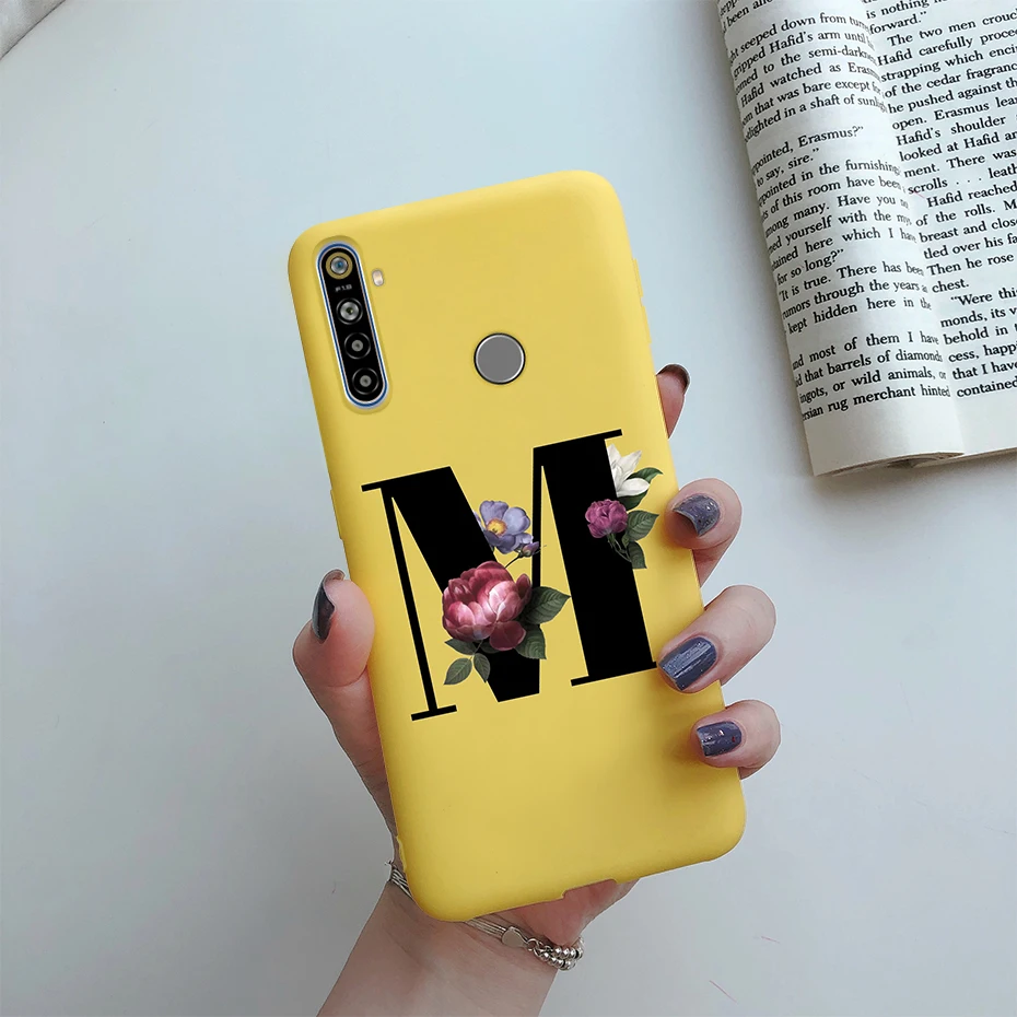 Para Realme C3 Funda blanda de silicona TPU monograma letras flor cubierta trasera para OPPO Realme C3 RMX2020 C 3 RealmeC3 Funda de teléfono Funda