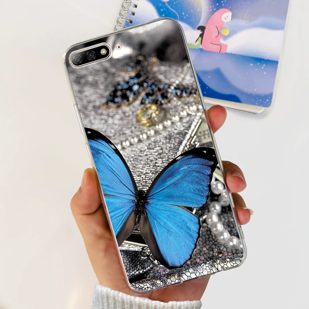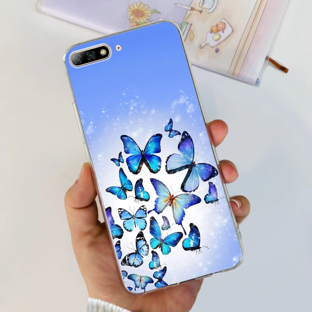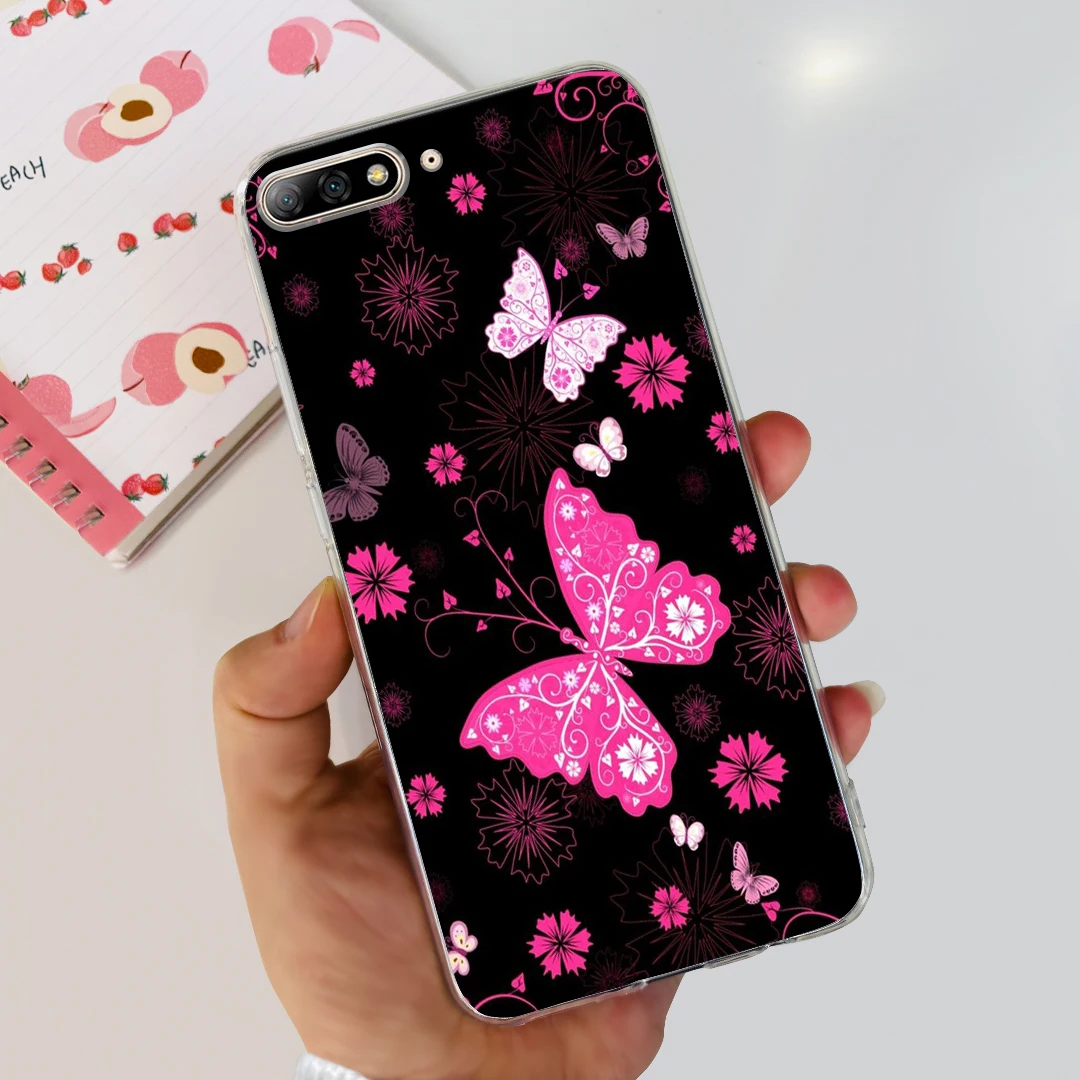 Para Huawei Y7 Pro 2018 funda 5,99 ''lindo gato mariposa pintada funda de silicona suave para Huawei Y7 Prime 2018 Y 7 parachoques