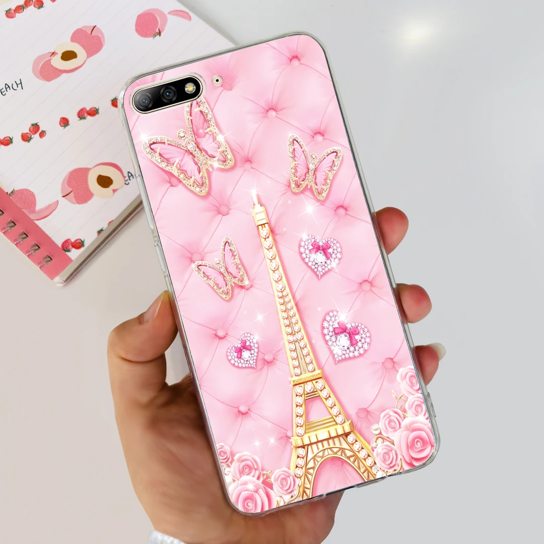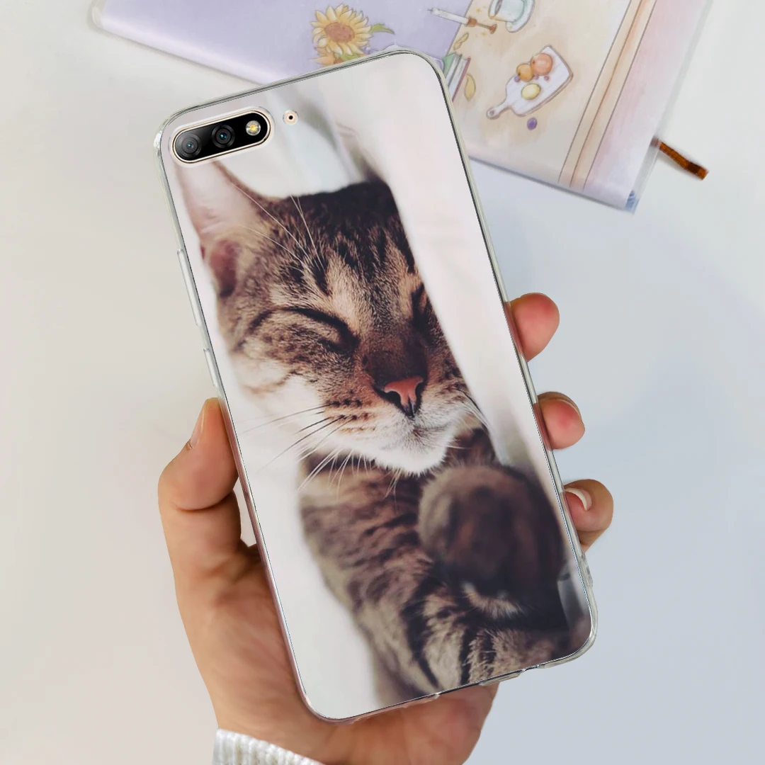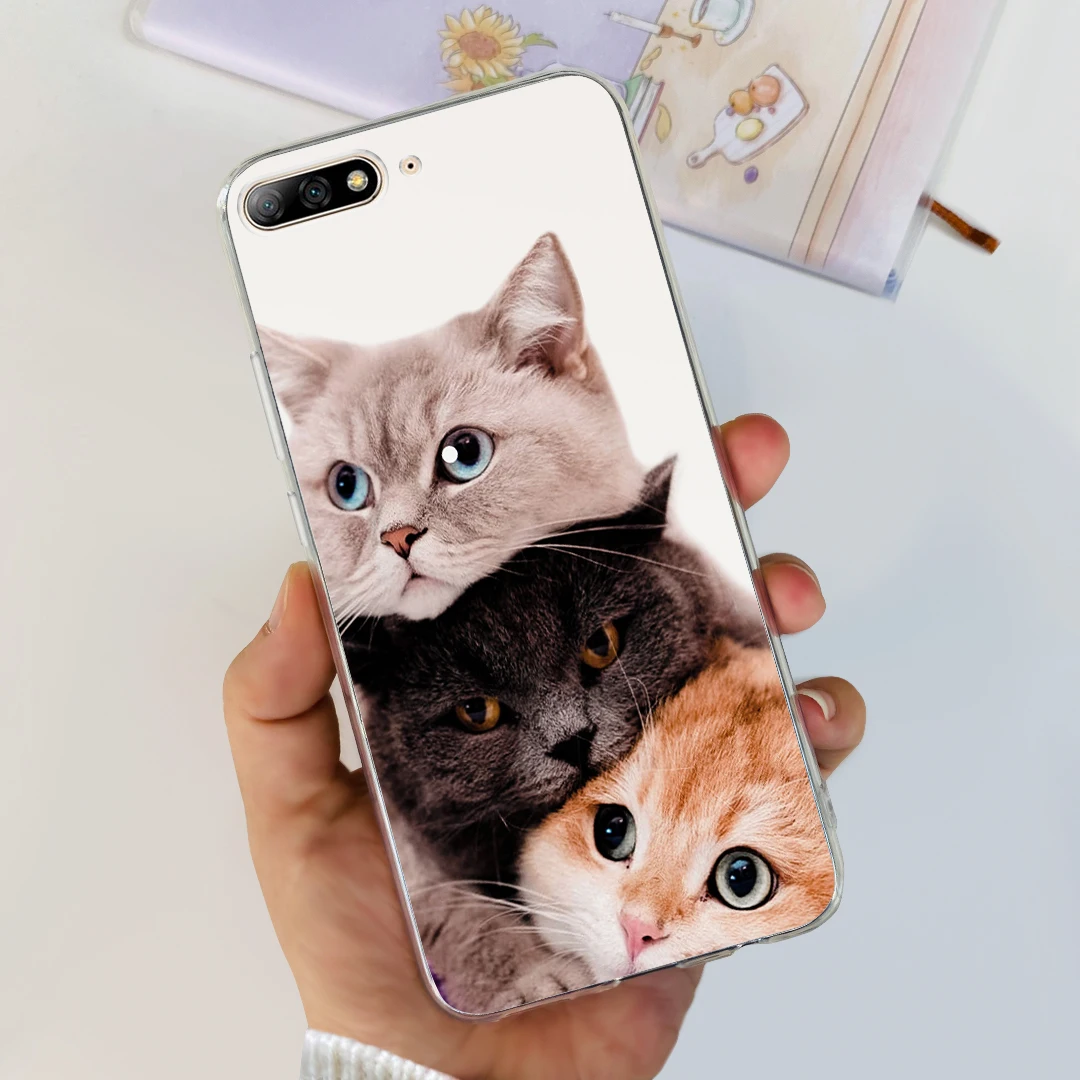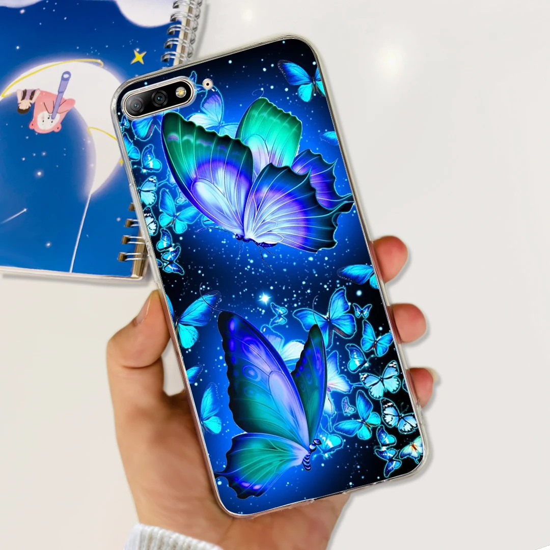 Para Huawei Y7 Pro 2018 funda 5,99 ''lindo gato mariposa pintada funda de silicona suave para Huawei Y7 Prime 2018 Y 7 parachoques