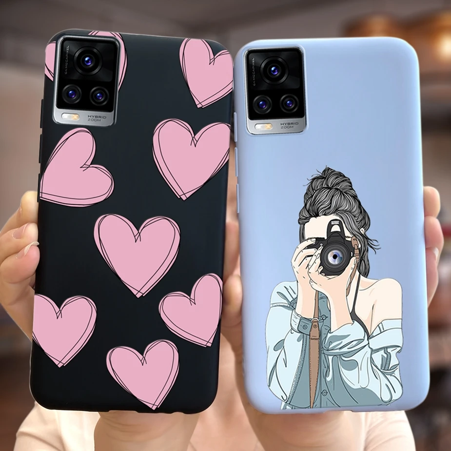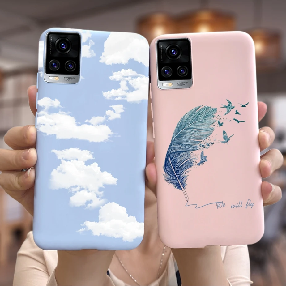 Para Vivo V20 funda V2025 V2024 silicona suave lindo amor corazón plumas fundas de teléfono para Vivo V20 2021 funda V 20 V2040 Fundas parachoques