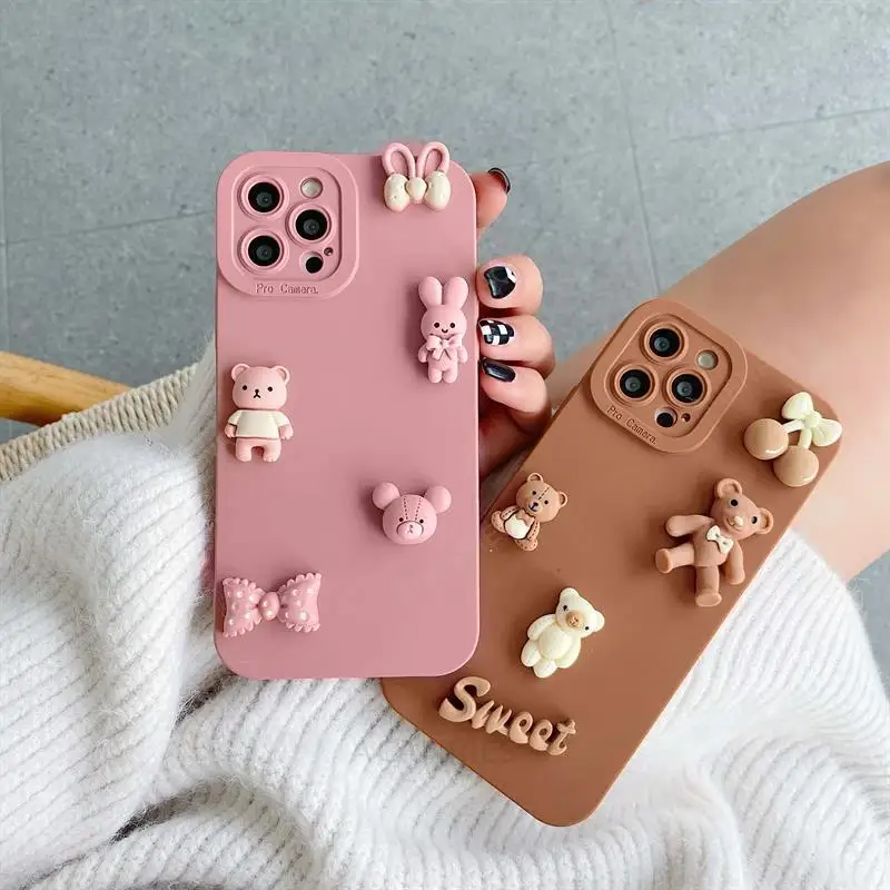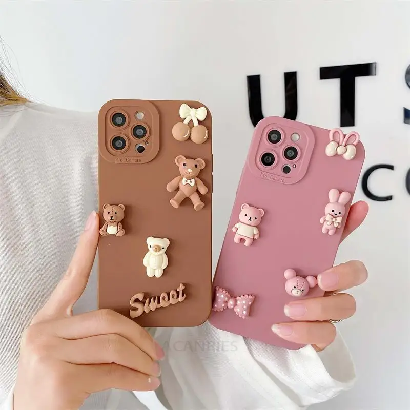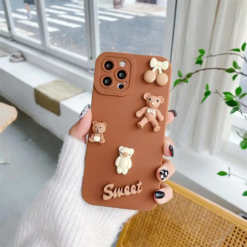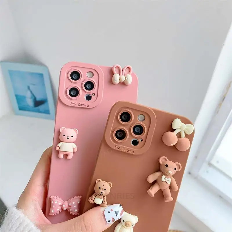 Comprar Funda de silicona con bonitos osos en 3D para Iphone 12 13 Mini 15 14 Plus 11 Pro Max X Xs Xr 15pro 13pro 14plus, funda trasera de dibujos animados Se 2022