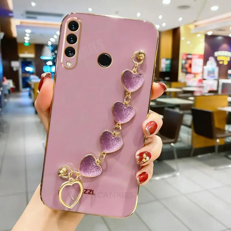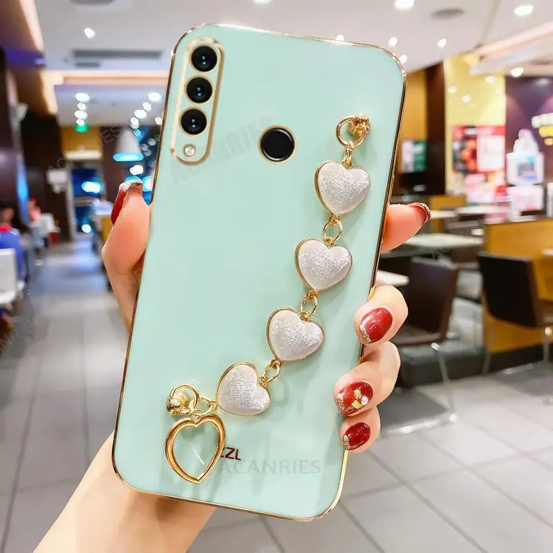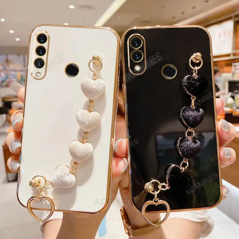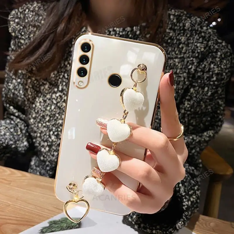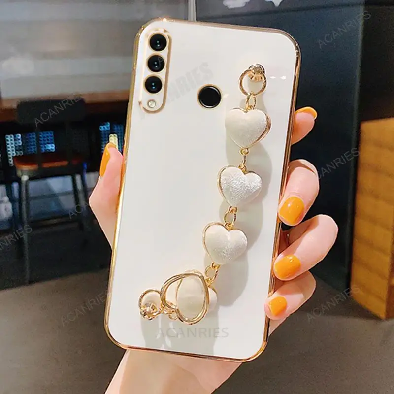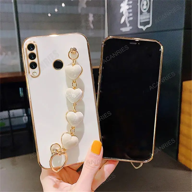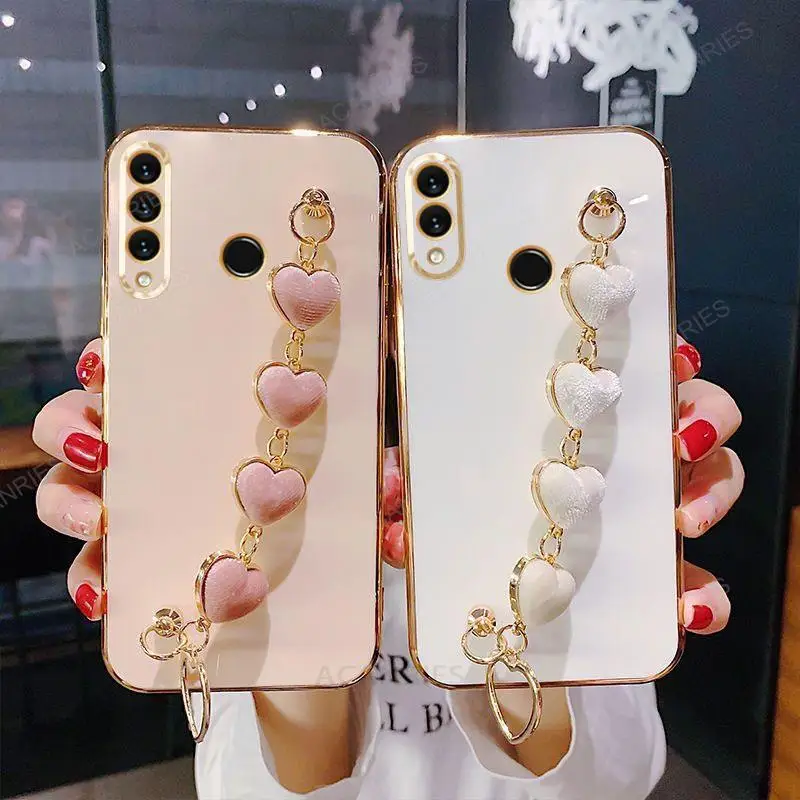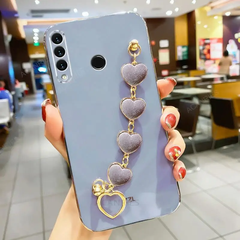 P30lite Love Heart Wrist Chain Silicone Case For Huawei P30 Lite P20 Pro P40 P Smart Plus Z Luxury Plating Cover Y6p Y7 Y6 2019