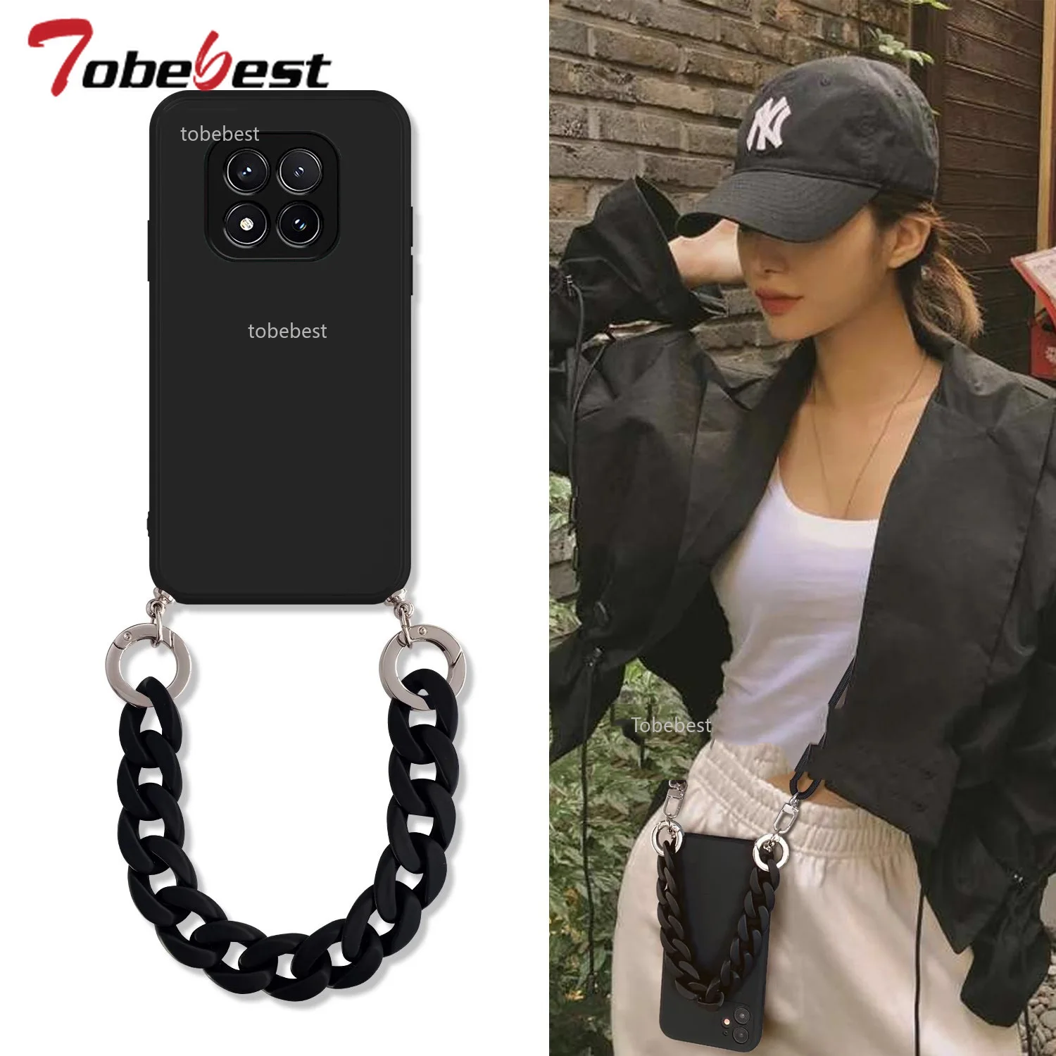 Funda de silicona con cordón y collar de cadena de mármol para Xiaomi Redmi Note 14 13 12 11 Pro Plus 14C 13C 12C 4G 5G