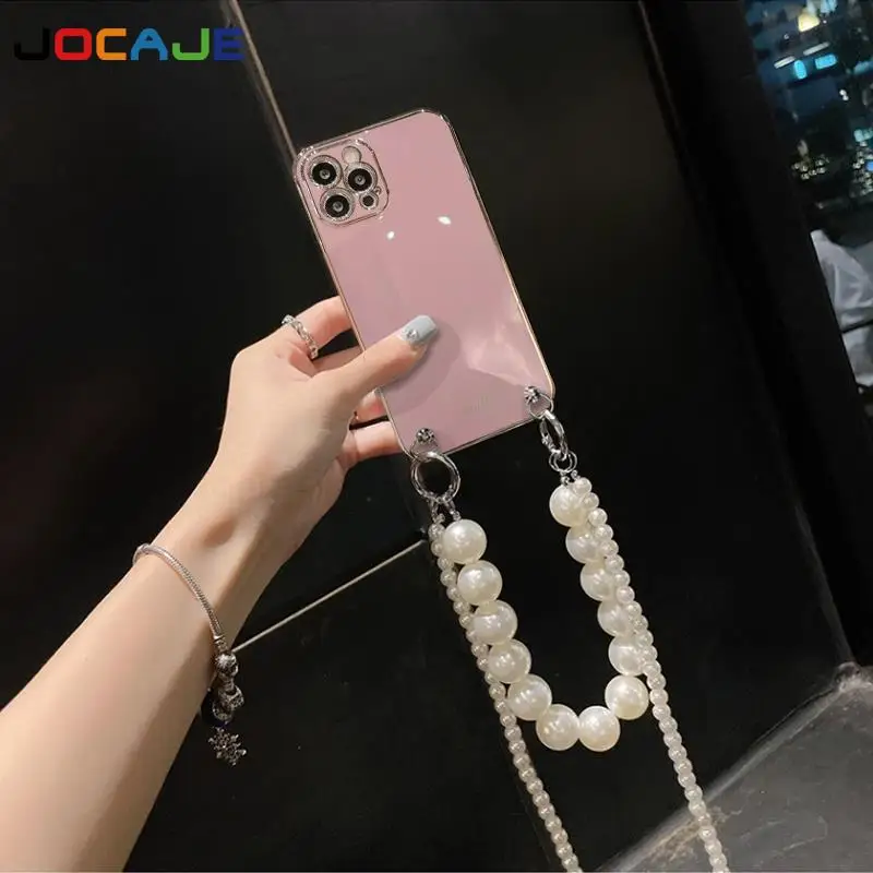 Funda de silicona chapada para Huawei Honor Magic 5 Pro 4 3 Lite, pulsera de cadena de perlas, cordón cruzado, funda protectora de lente para teléfono
