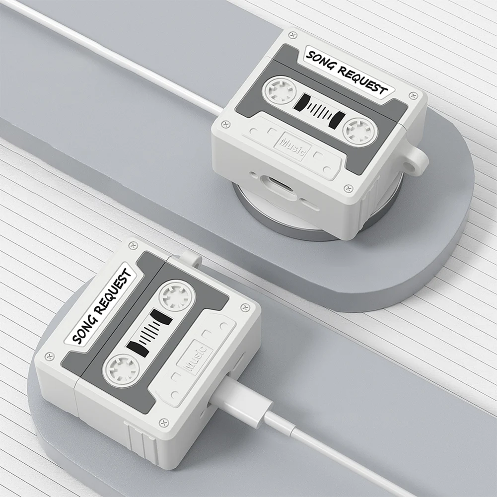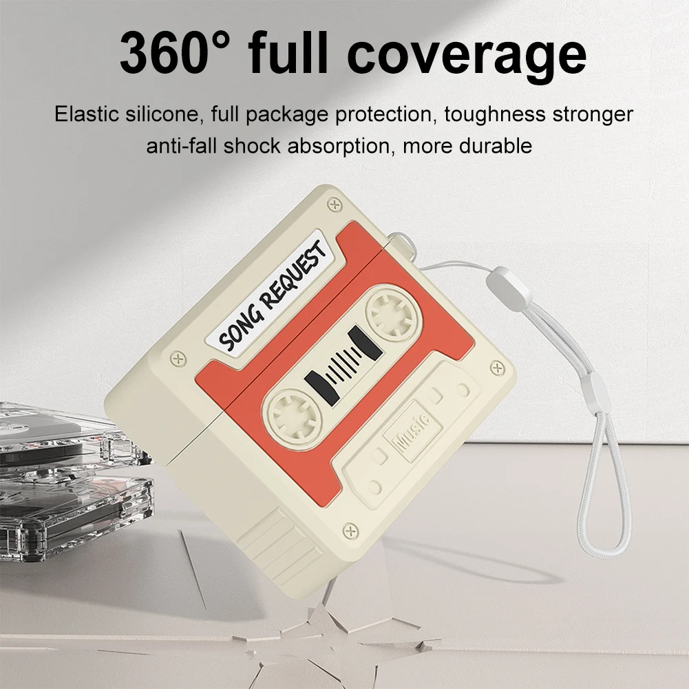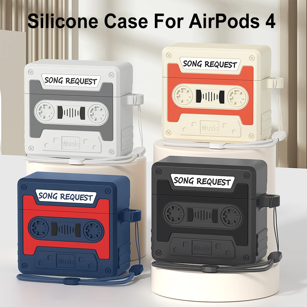 Característica:1.Caja de silicona con cinta de casete:Específicamente compatible con AirPods 4 (2024), esta funda de silicona con cinta para casete ofrece un ajuste cómodo pero no restrictivo con 360° protección.Su exquisito diseño retro en 3D hace que su estuche de carga destaque y gane cumplidos.