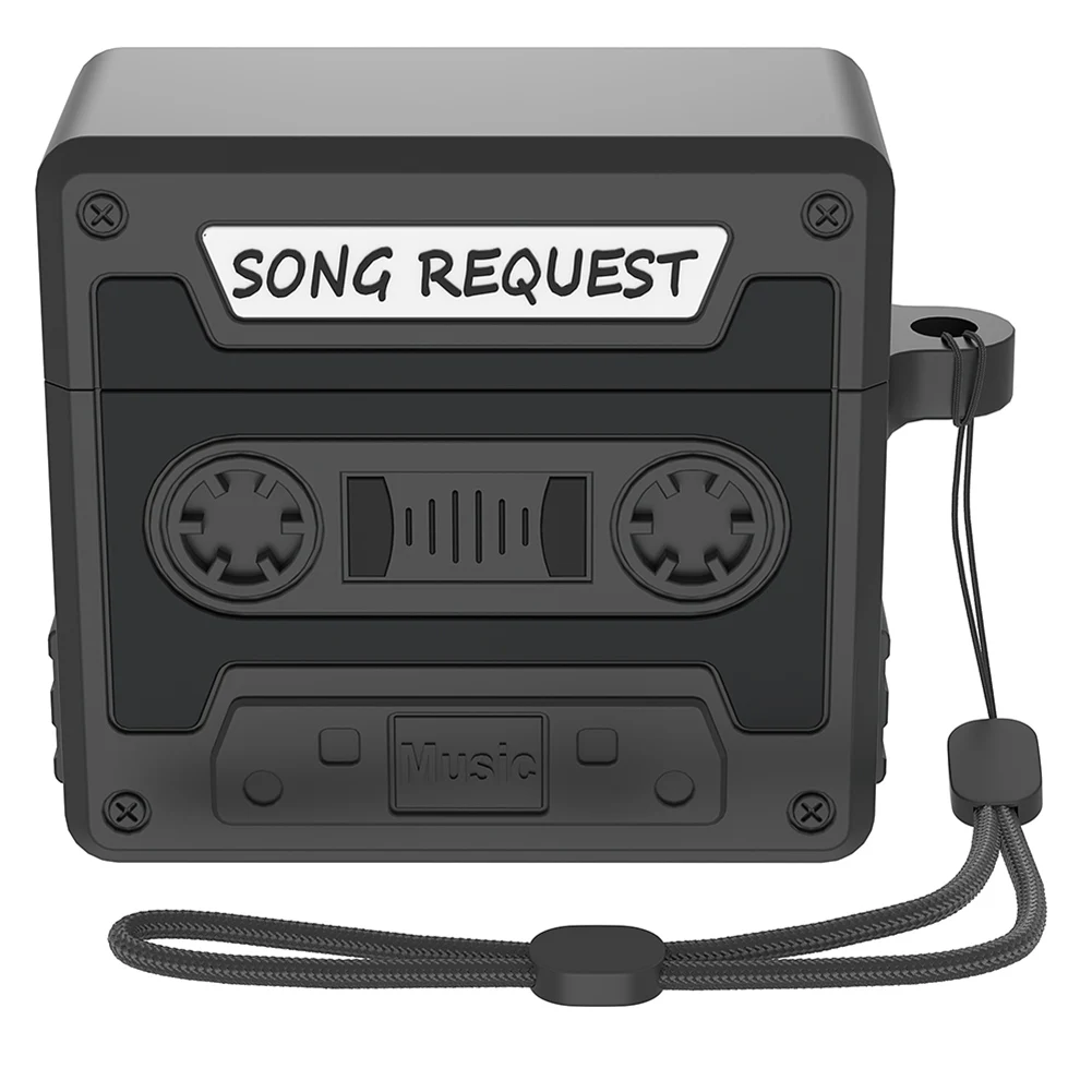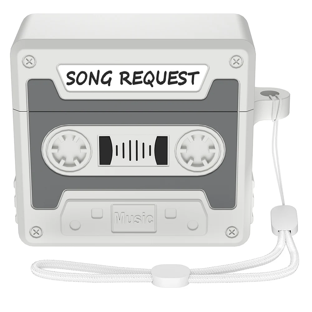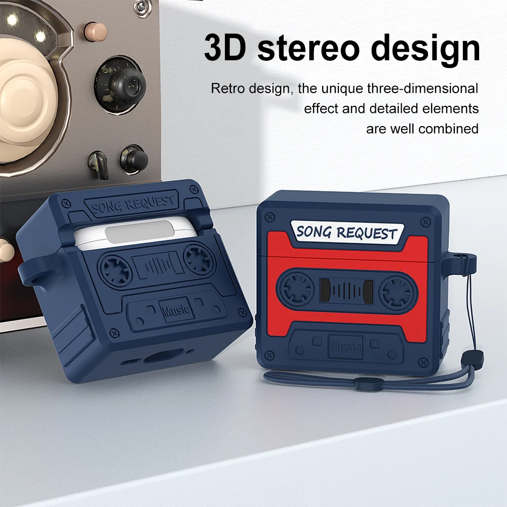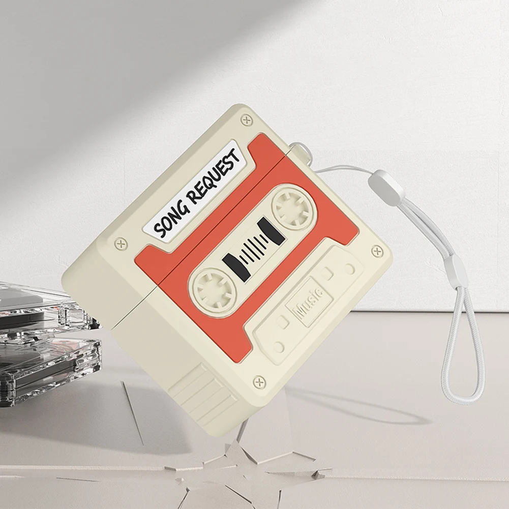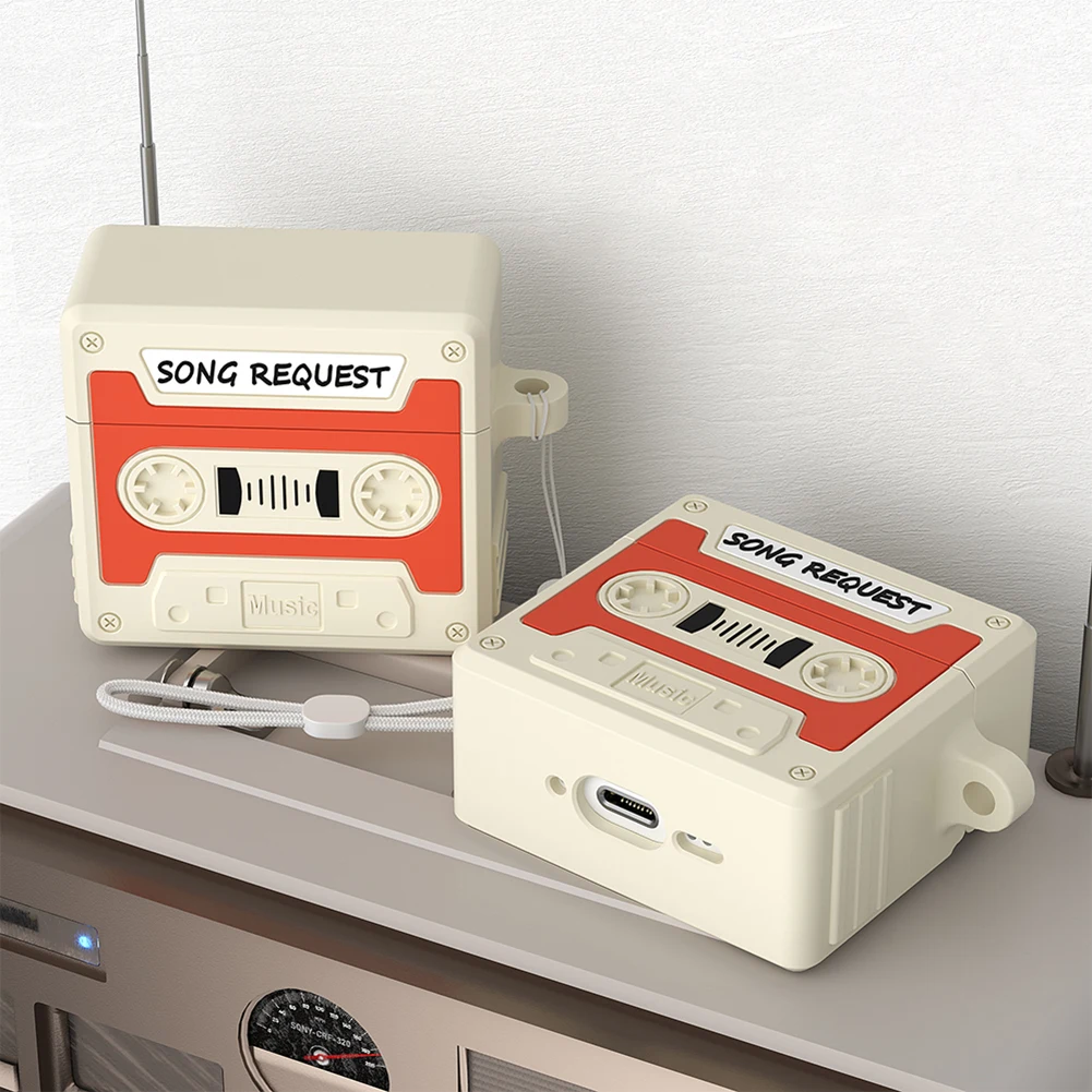 Funda de silicona con cinta de casete, funda protectora de silicona suave bonita 3D a prueba de golpes con cordónCompatible conEstuche de carga Airpod de cuarta generación 2024