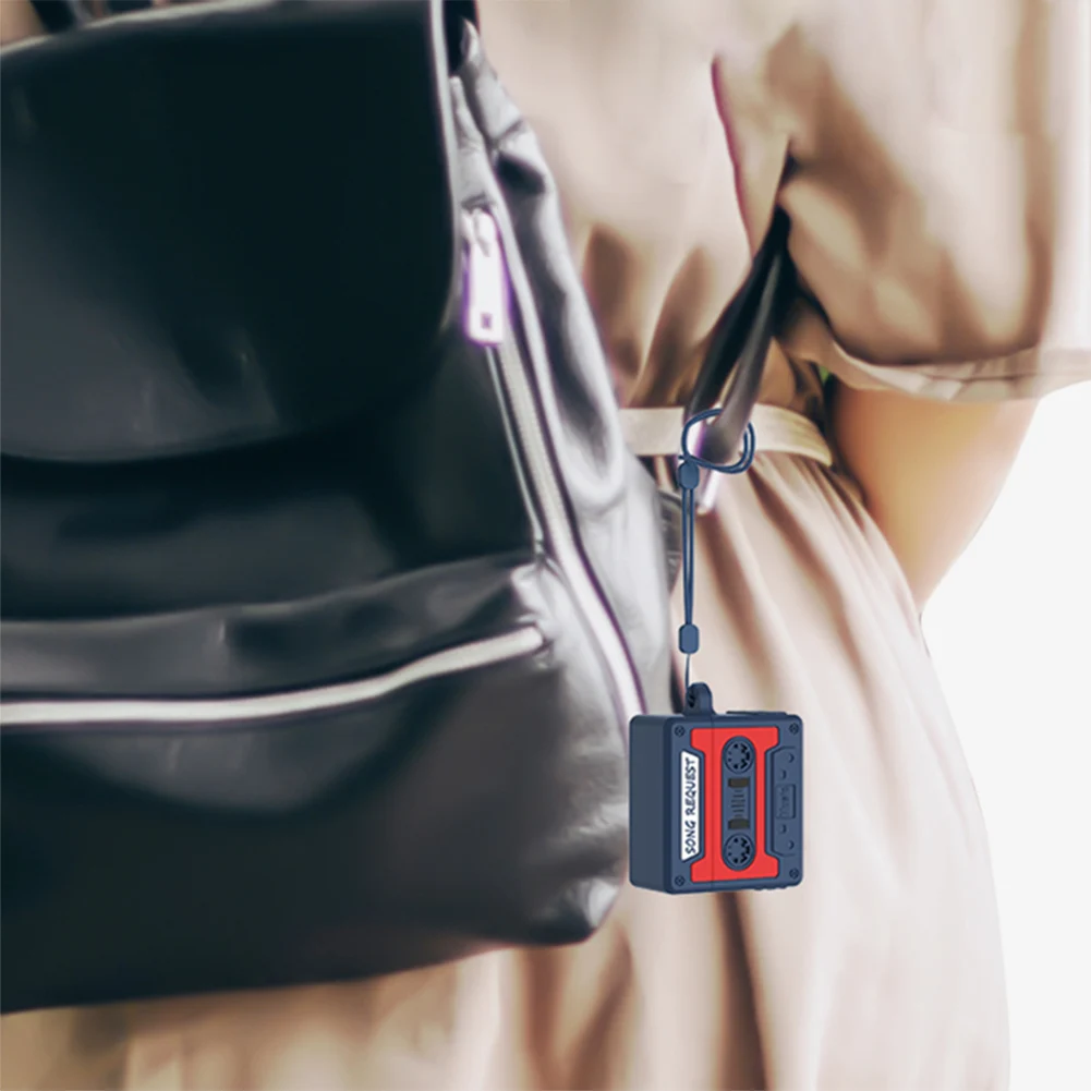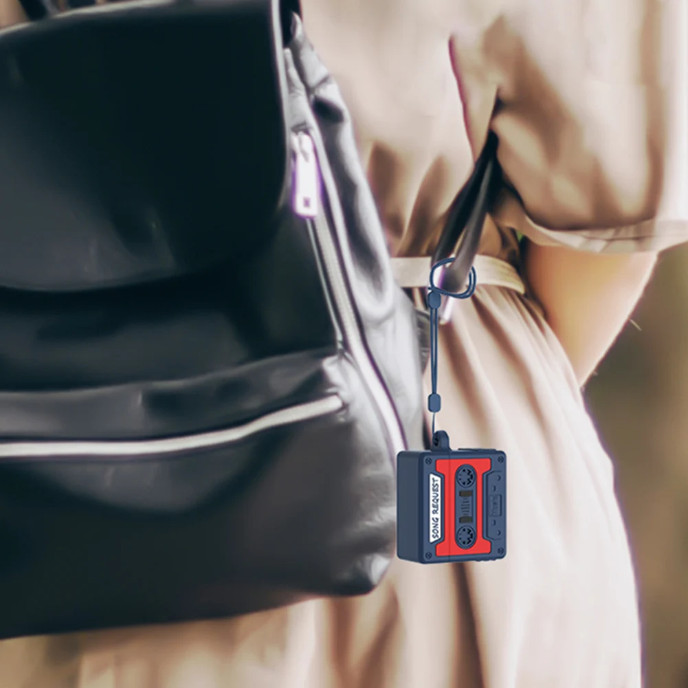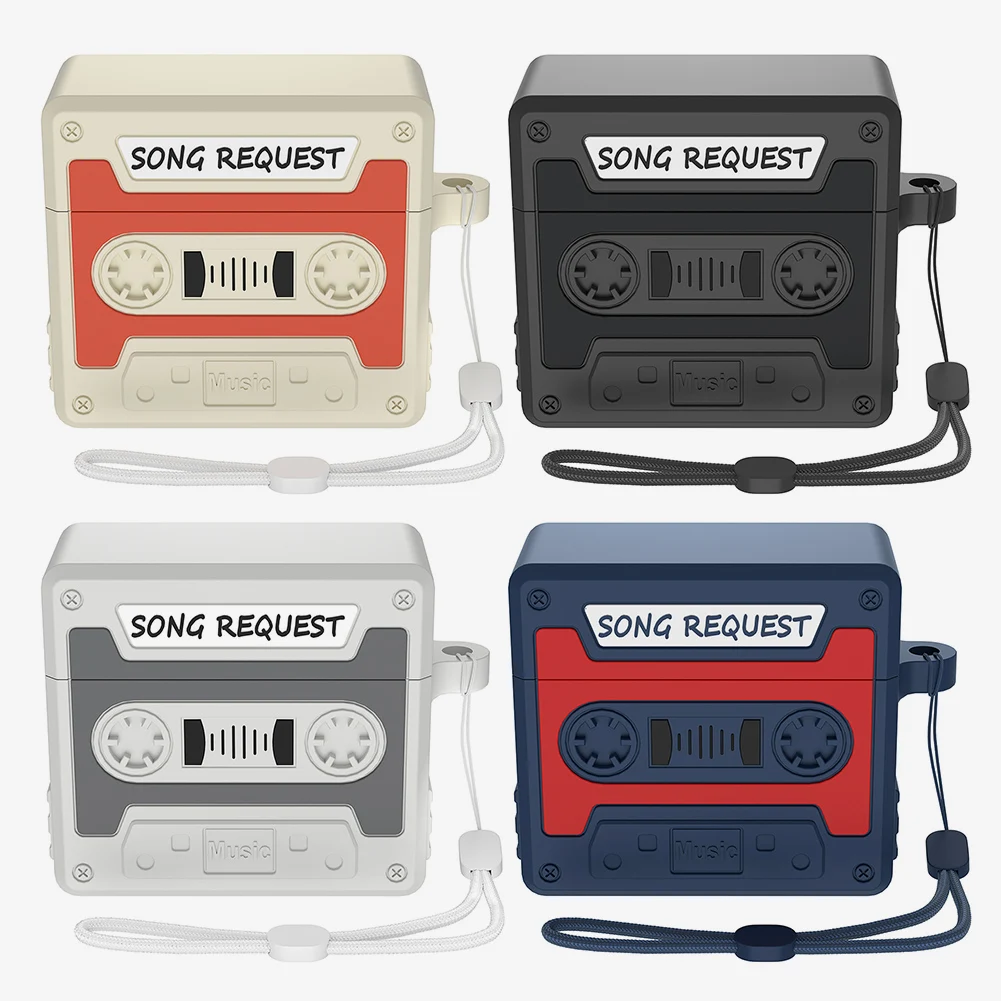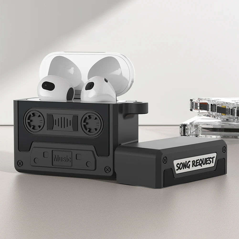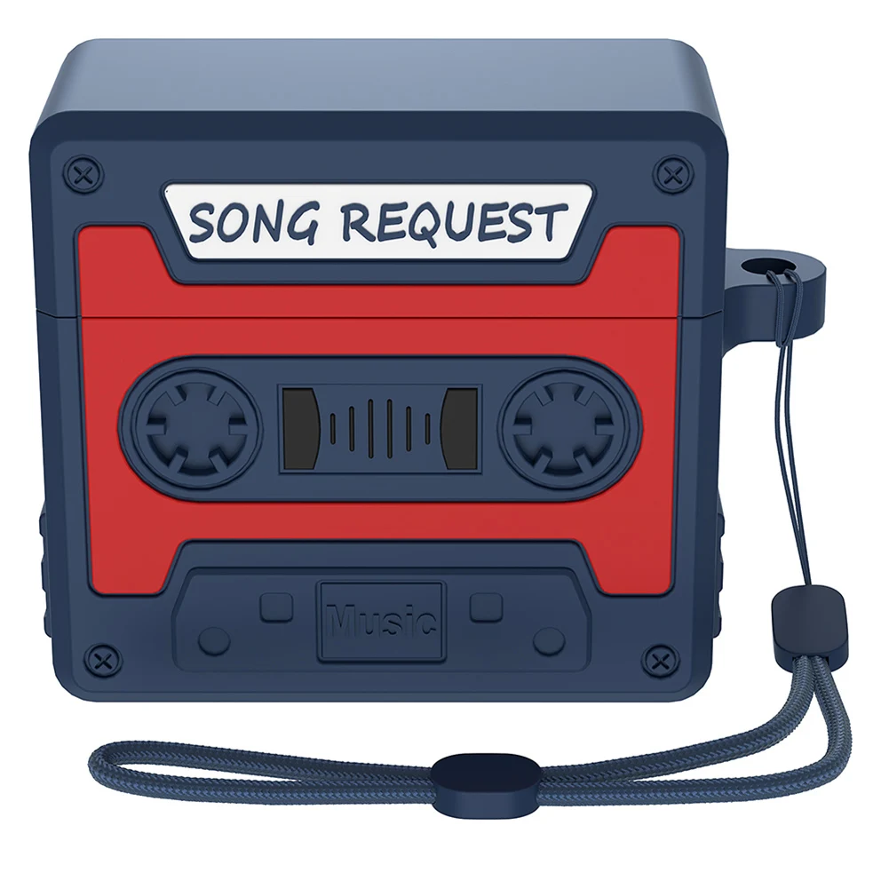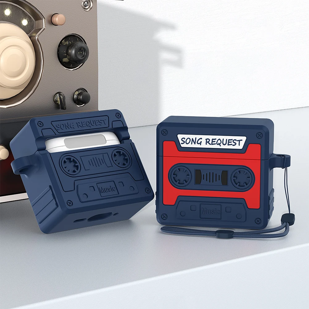 Funda de silicona con cinta de casete, funda protectora de silicona suave bonita 3D a prueba de golpes con cordónCompatible conEstuche de carga Airpod de cuarta generación 2024