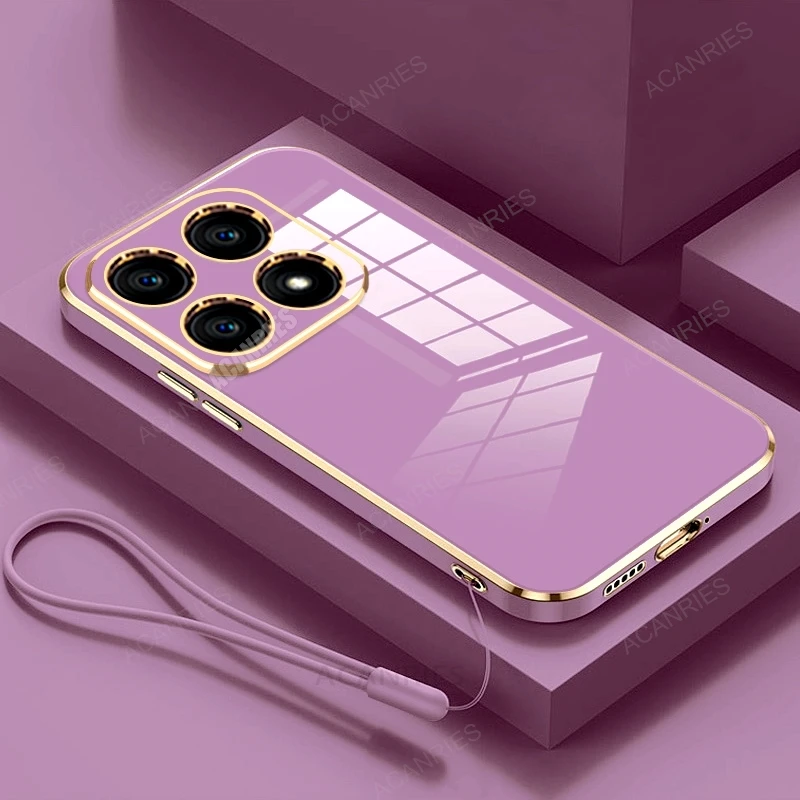 Funda de silicona con cordón chapado de lujo Xiaomi14t para Xiaomi Mi 14t Pro 13t 12t 11t 10t Mi14 14 T 13 12 11 Lite 4g 5g contraportada