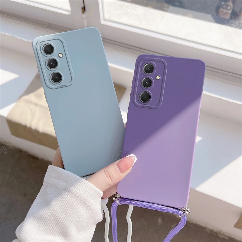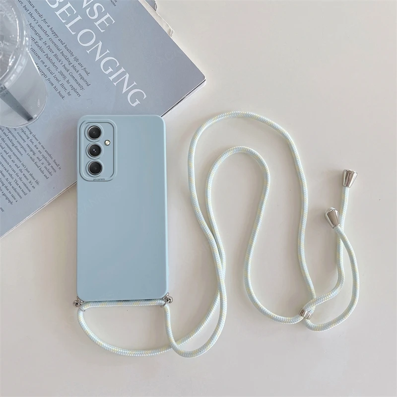 A 06 16 26 36 56 Funda de silicona con cordón cruzado para Samsung Galaxy A16 A06 A26 A36 A56 4g 5g Correa de moda Funda trasera suave