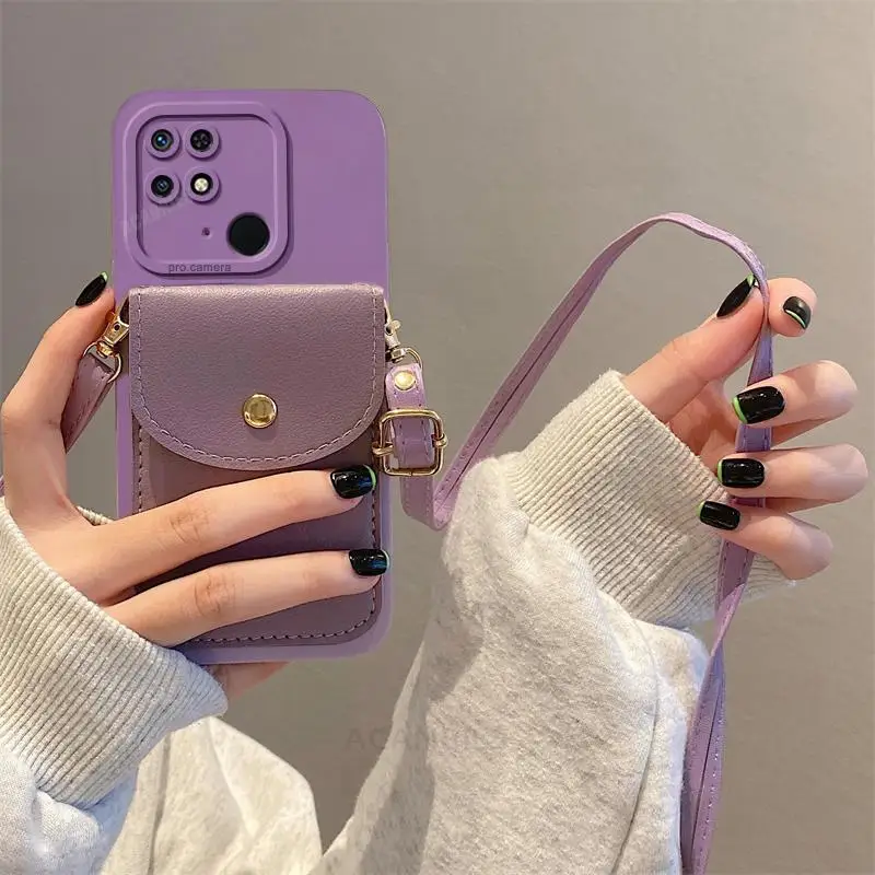Comprar Funda de silicona con cordón cruzado para Xiaomi, cartera con tarjetero para Redmi 10, 10a, 10c, 12, 4g, 12c, 9, 9a, 9c, Nfc, A1, A2
