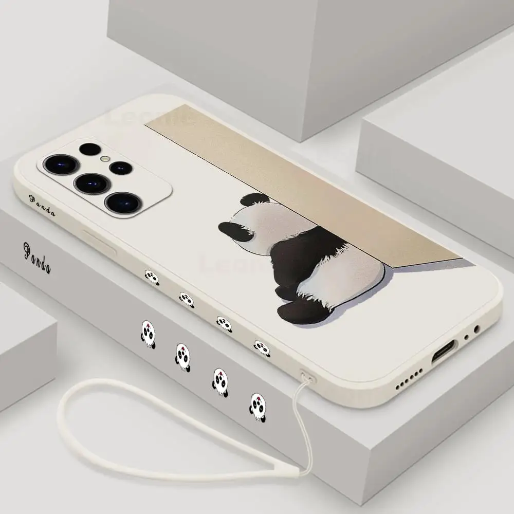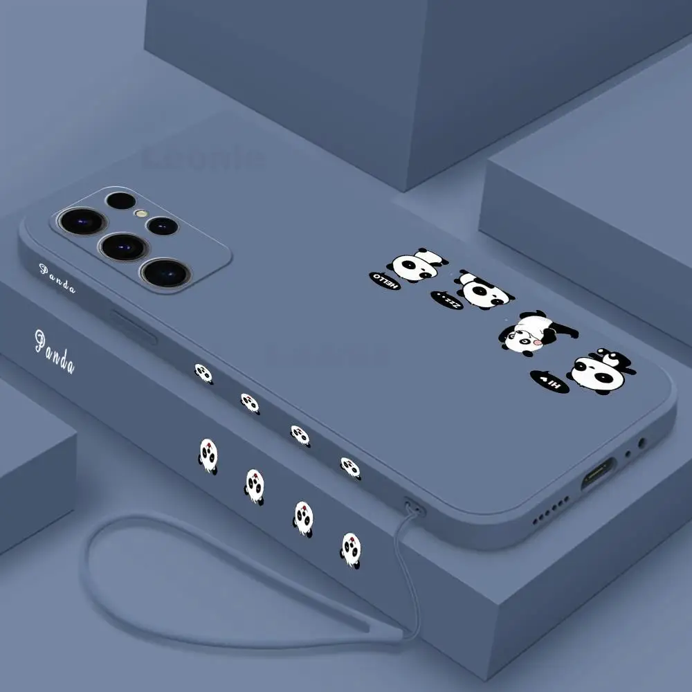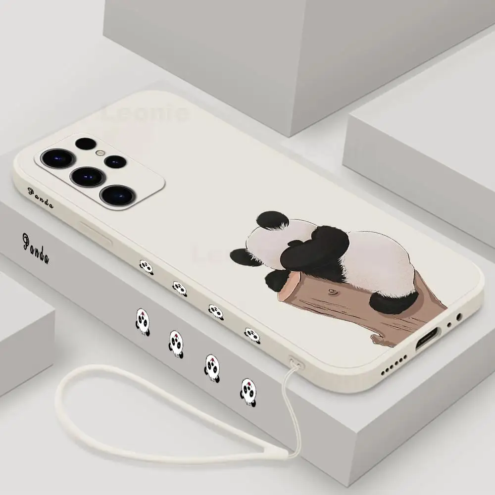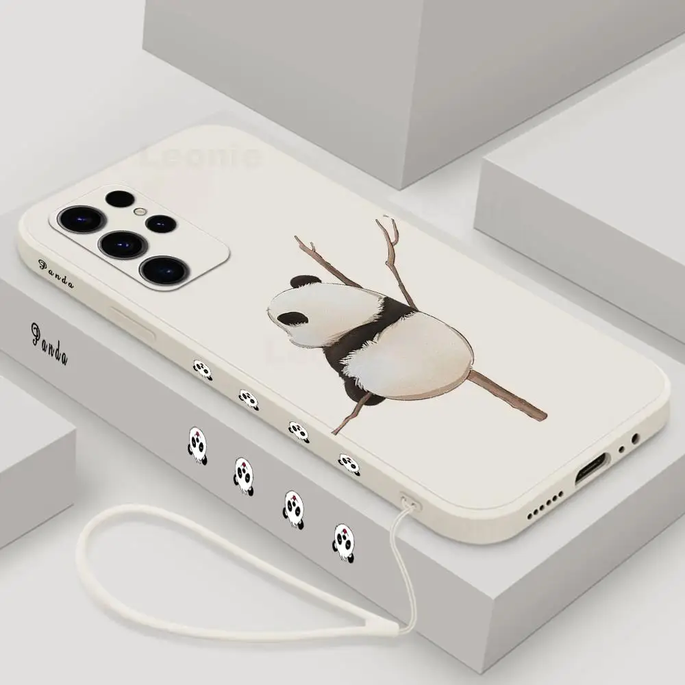 Panda Case For Samsung Galaxy S23 S22 S21 ultra S20 Plus S21 FE 5G S10 Plus s10e s20 fe Skin Silicone Phone Cover with Lanyard