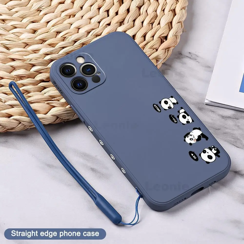 Nombre: funda de teléfono con patrón de Panda Característica A: funda de teléfono de silicona líquida-forro de franela Característica B: con cordón de soporte de mano Característica C: Piel de bebé Tacto cómodo Característica D: a prueba de caídas, a prueba de golpes, a prueba de arañazos, protección de lentes