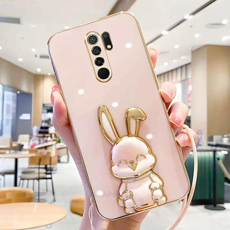 Note8pro funda de lujo con soporte de conejo para Xiaomi Redmi Note 8 Pro 8t 7 7pro 9 Redmi9 funda de silicona con cordón Note8 2021